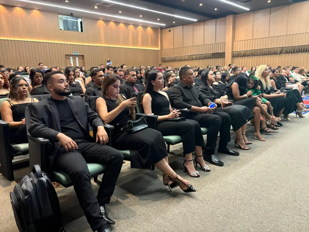 Entre sorrisos, homenagens e muita emoção, os futuros bacharéis em Direito viveram uma etapa inesquecível, marcada pela ética, pela responsabilidade e pelo compromisso com a justiça. A solenidade teve início às 16h30 com o momento das fotos e seguiu às 18h30 com a cerimônia oficial, reunindo autoridades acadêmicas, professores homenageados, familiares e amigos.