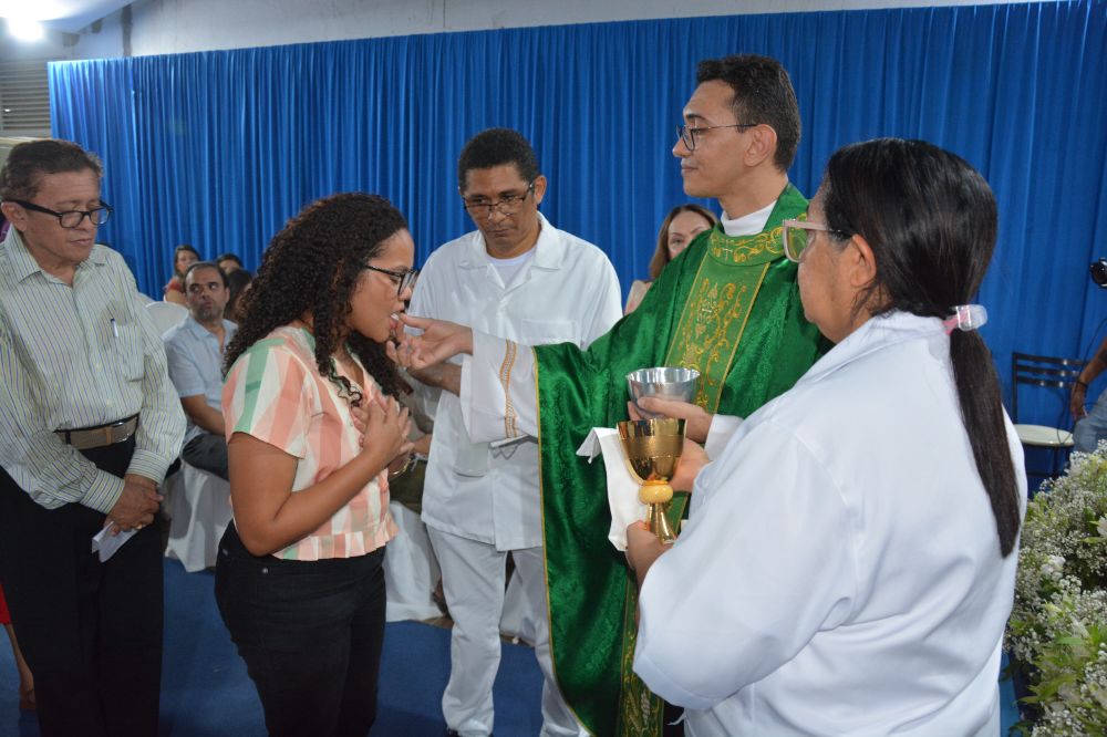 A missa em ação de graças, celebrada pelo Frei Fábio Luiz Martins, foi regada com muita emoção e reconhecimento. Prestaram-se homenagens aos médicos fundadores da Santa Fé: Dr. Valdir Brito, Dr. José Anchieta e Dr. Raimundo Gonçalves, além da ex-diretora Dra. Jeovanda Noleto, dentre outros importantes parceiros.