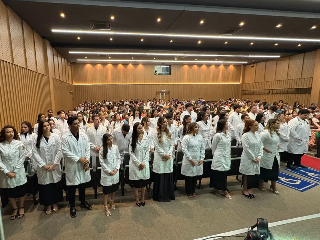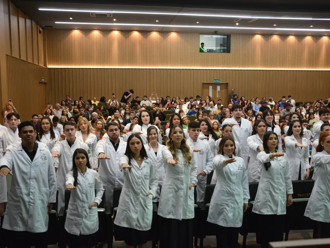Na ocasião, os acadêmicos vestiram pela primeira vez o símbolo que representa devoção à Medicina, . Um misto de emoção e orgulho para os futuros médicos, reforçando a responsabilidade que assumirão em suas futuras carreiras. Ao vestir o jaleco, o aluno sente o compromisso e a honra de representar a ciência e a humanidade, iniciando oficialmente sua jornada na arte de salvar vidas.