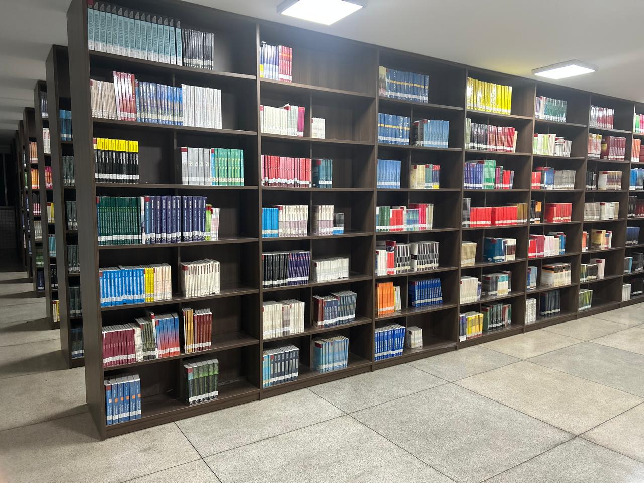 O acervo encontra-se informatizado, atualizado e tombado, utilizamos o Sistema TOTVS para o gerenciamento do acervo, permitindo aos usuários consultarem, reservar e fazer renovações online. Usamos as regras do Código de Catalogação Anglo Americano (AACR2). A organização do acervo é realizada de acordo com a Classificação Decimal de Dewey (CDD) e a Classificação Decimal de Direito (CDDir).