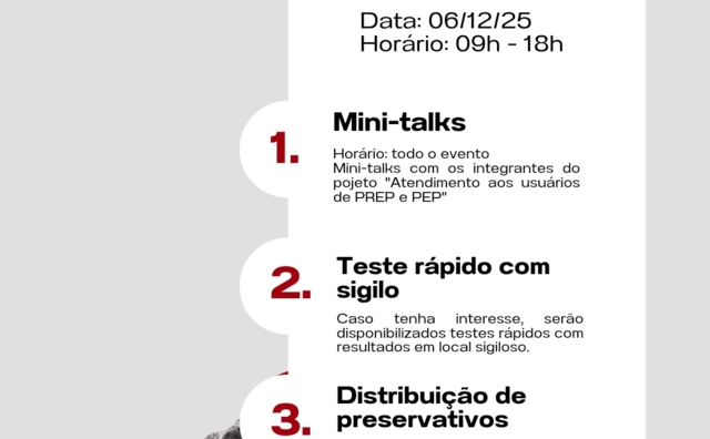 O evento contará com uma programação completa, com palestras, ações educativas e muitas informações essenciais sobre prevenção combinada, incluindo PrEP e PEP.
