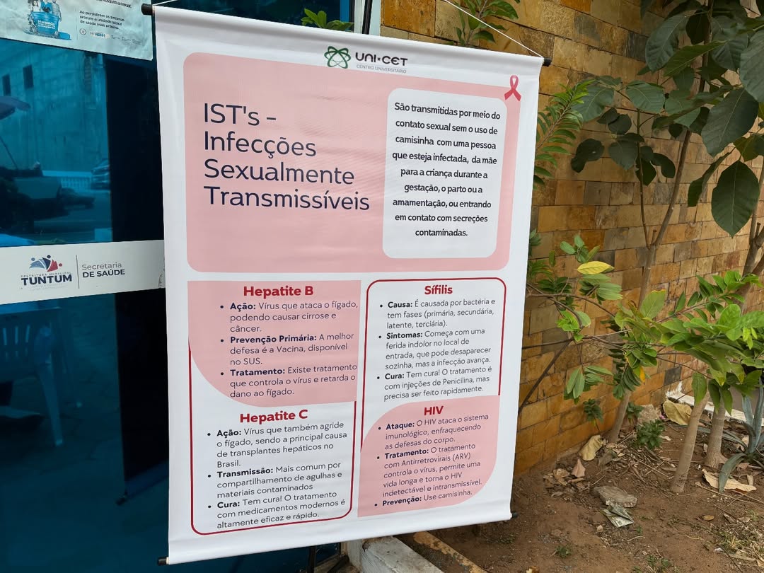 Neste sábado (29), o projeto de extensão UNI-AÇÃO SAÚDE TOTAL: Cuidado e Prevenção, realizado por estudantes de Farmácia e Biomedicina do UNI-CET, em parceria com a Secretaria Municipal de Saúde de Tuntum–MA, ofereceu acolhimento e orientações essenciais à comunidade local.