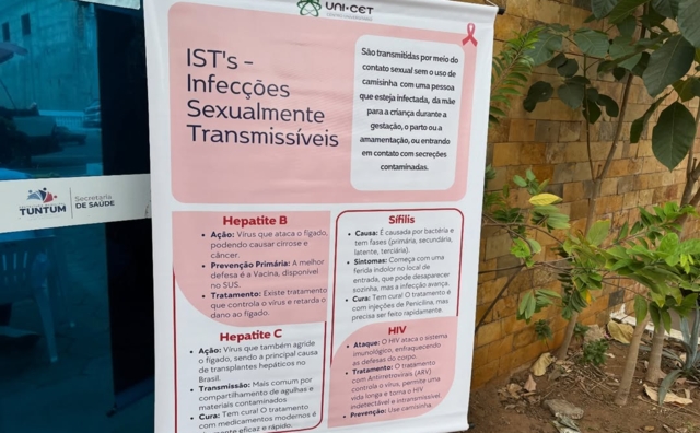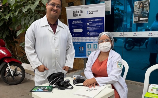 Essa parceria demonstra o trabalho em conjunto do UNI-CET e da Secretaria Municipal de Tuntum, unindo forças para promover saúde com afeto e proximidade. "Estaremos realizando uma triagem. A partir dos resultados, a gente vai encaminhar para a Secretaria de Saúde, no intuito de possam fazer o tratamento adequado. Estamos no mês de novembro, época de conscientização, principalmente, sobre a saúde do homem. Nesse sentido, estamos orientando esses pacientes em relação às medidas que eles podem tomar para assegurar uma saúde de qualidade", frisa Thiara Lorenna, professora do curso de Farmácia.