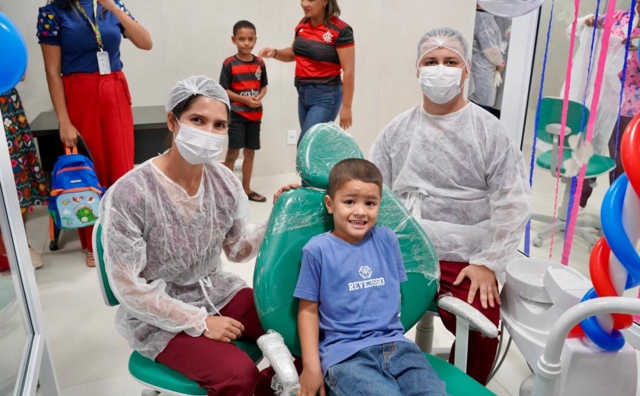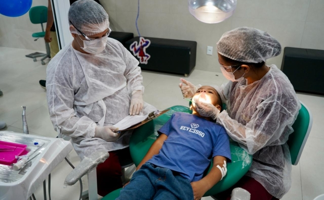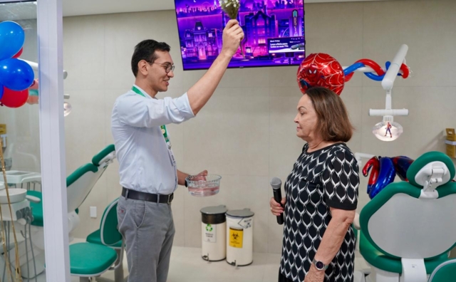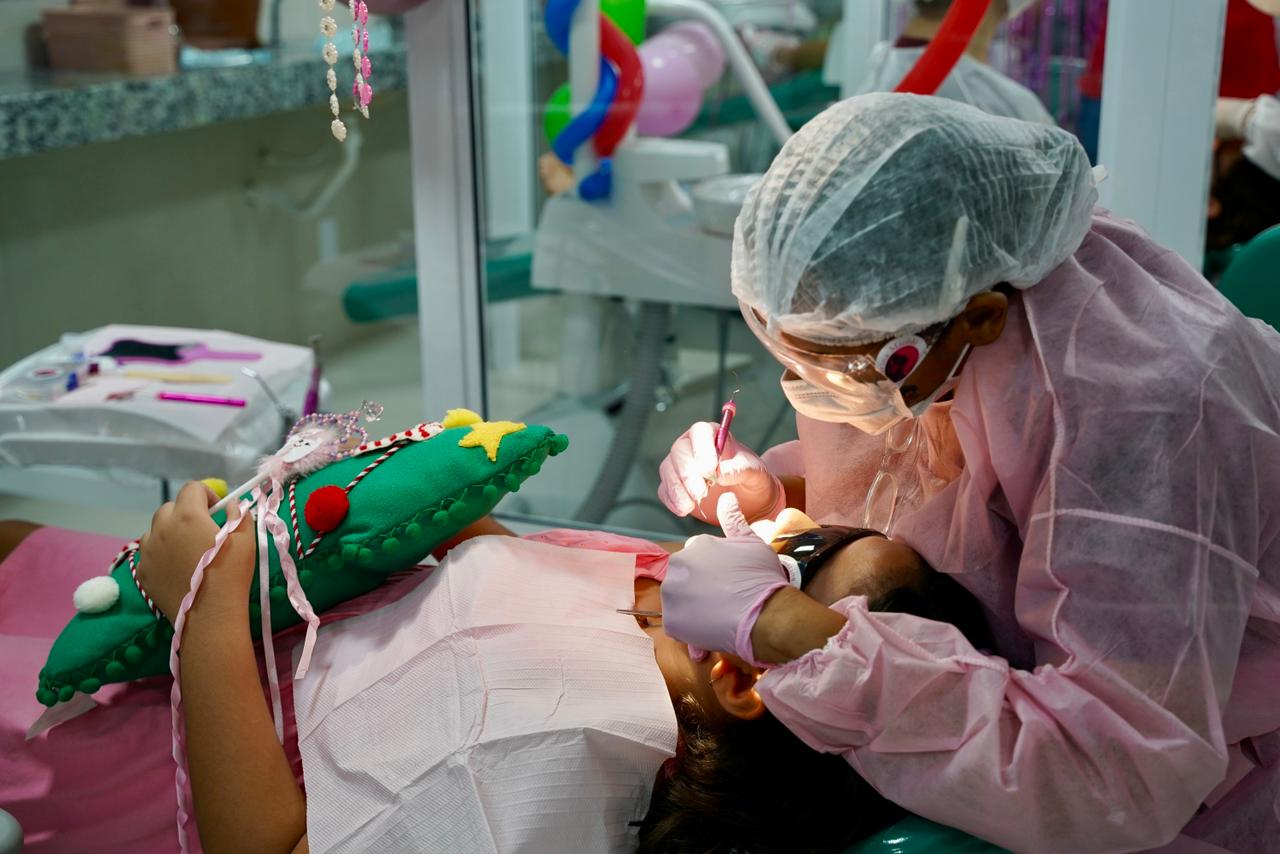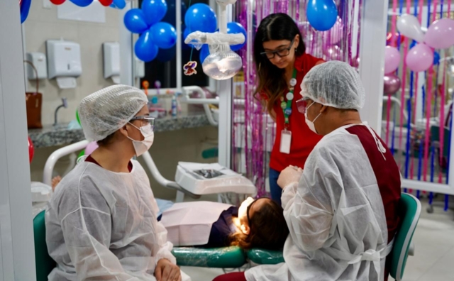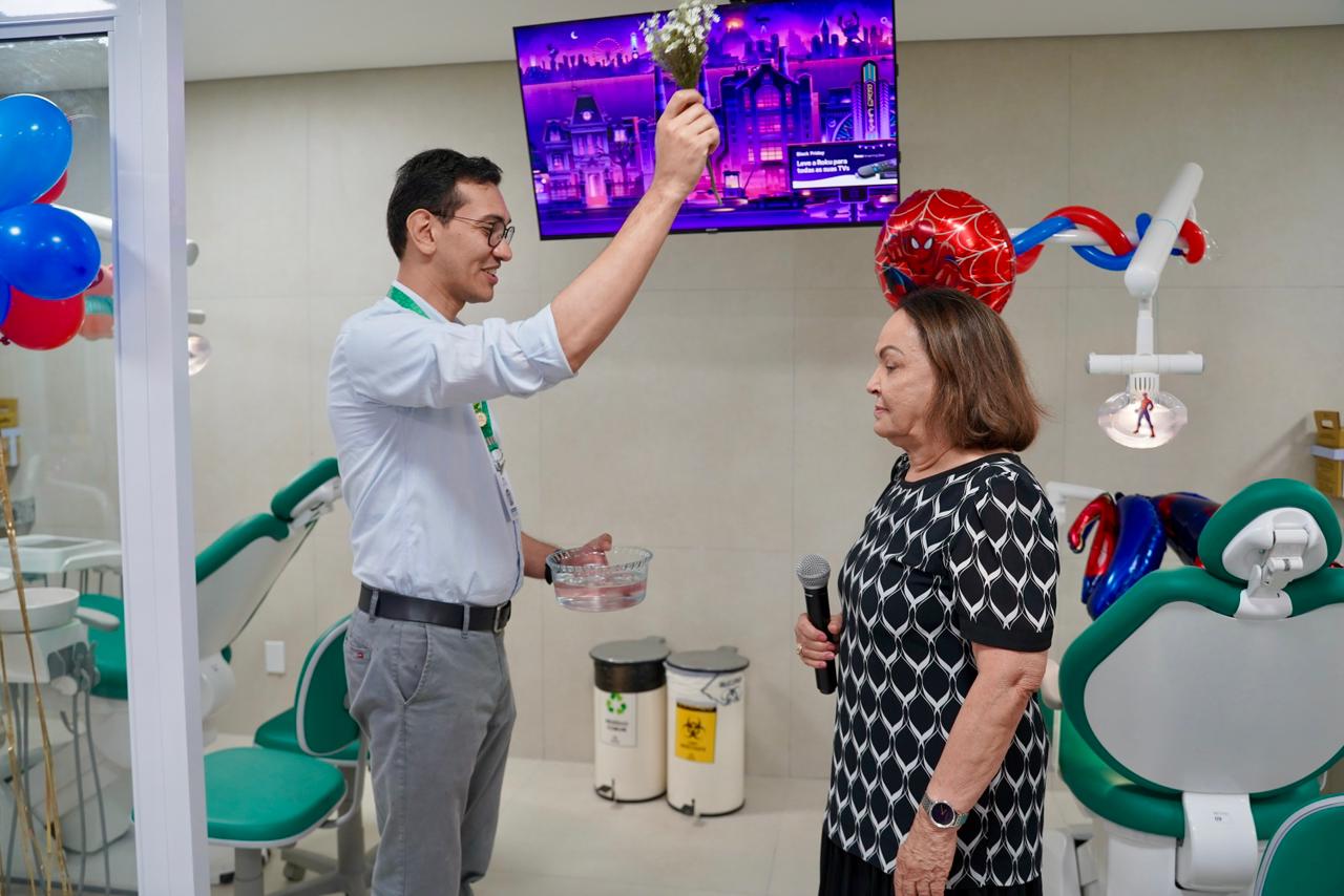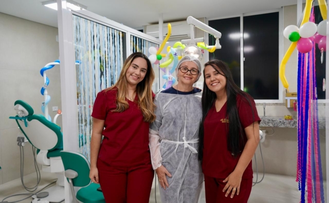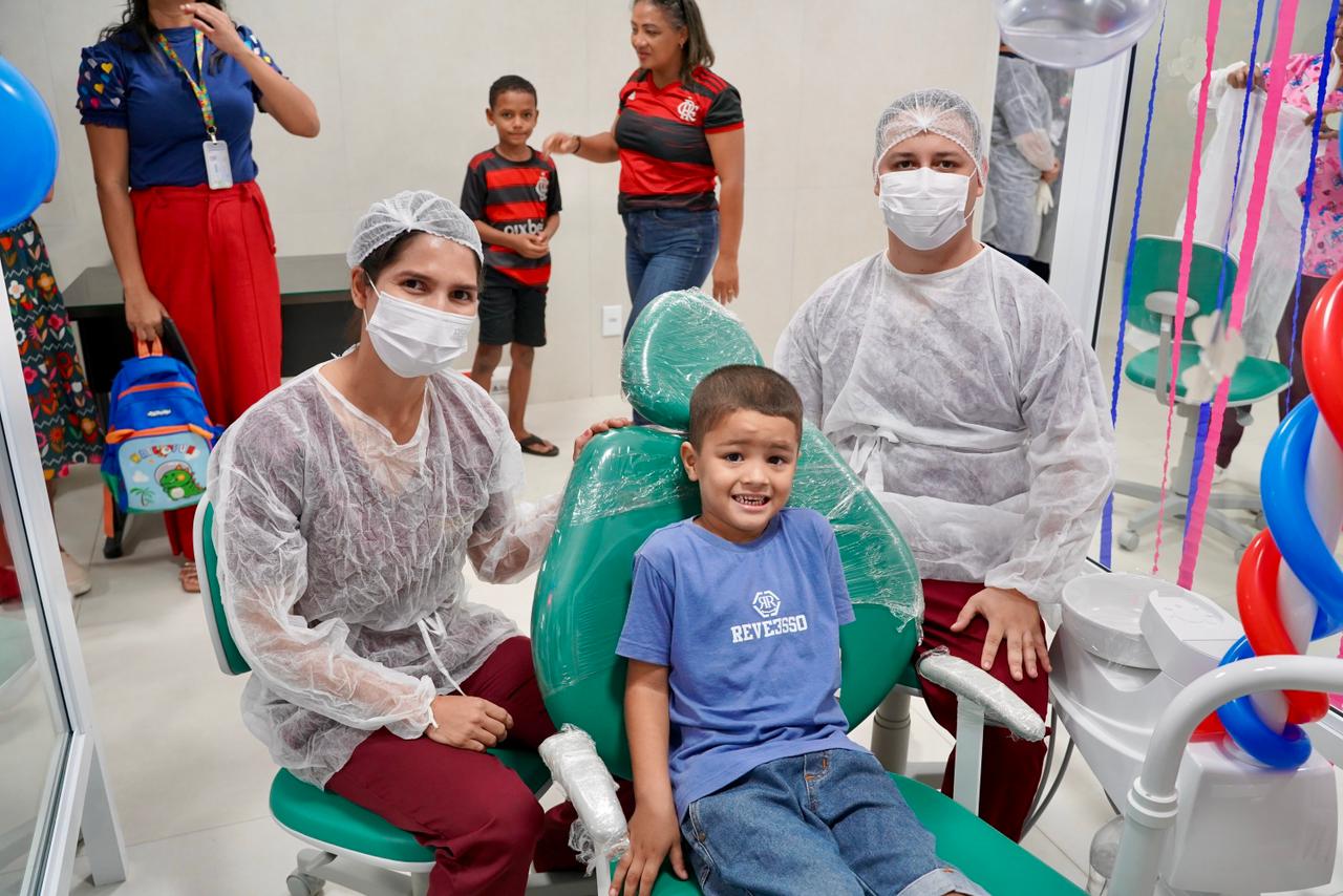 A inauguração já começou com cuidado especializado: os primeiros atendimentos foram de odontopediatria, realizados pelos acadêmicos do 5º período, sob orientação da professora Izabel Quaresma, especialista em Odontopediatria e Pacientes Especiais.