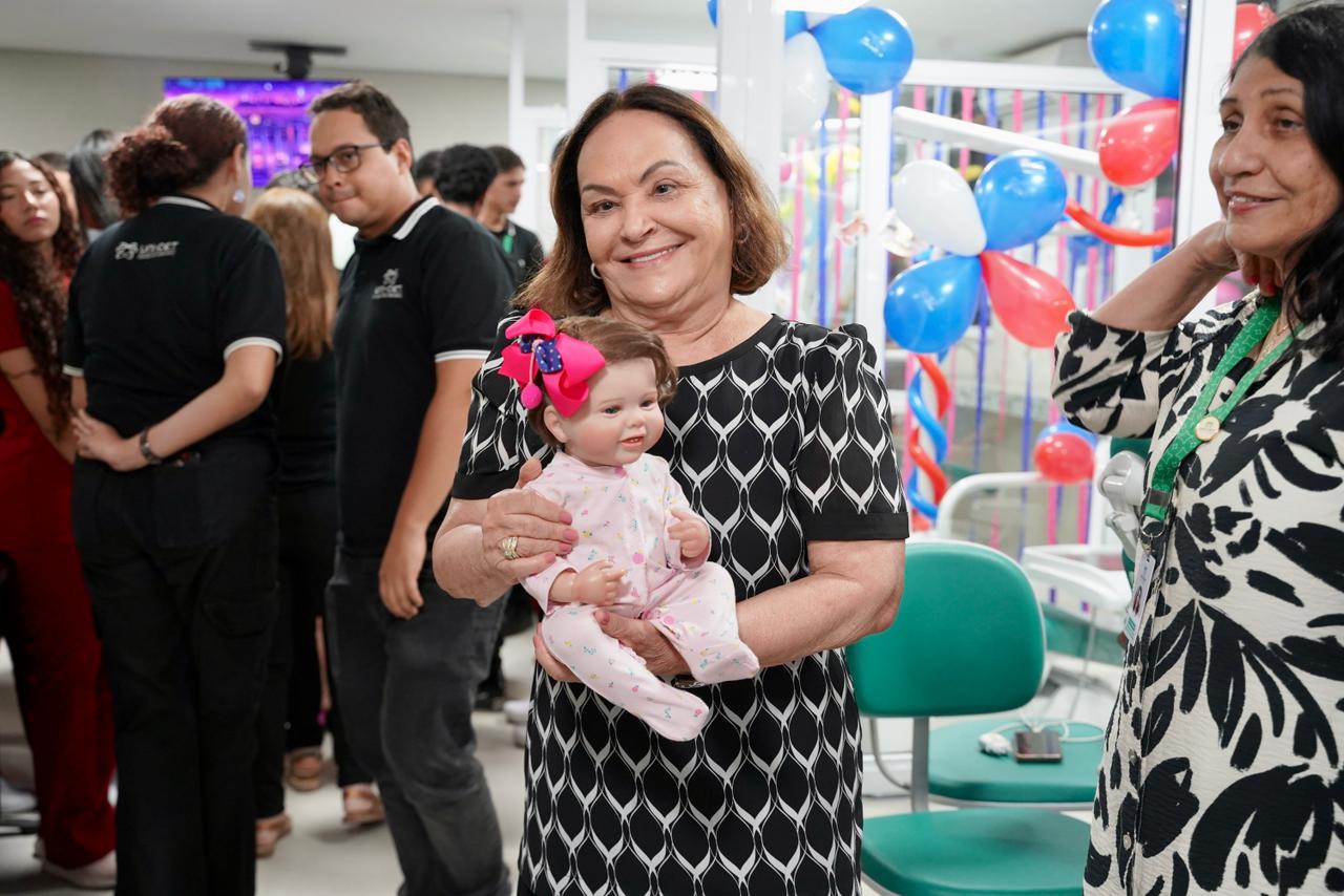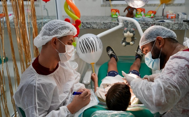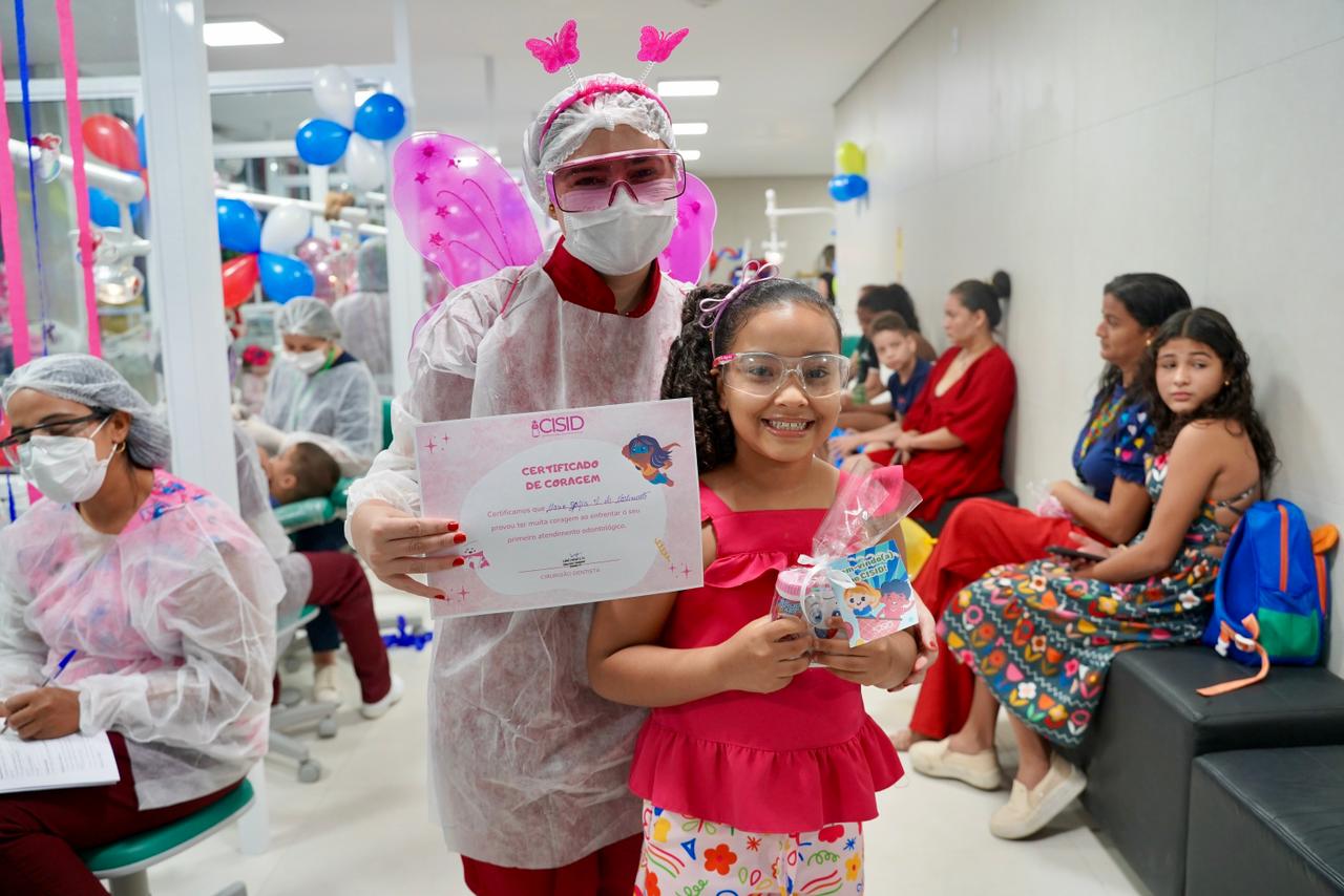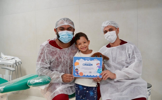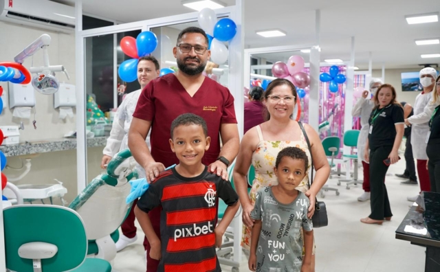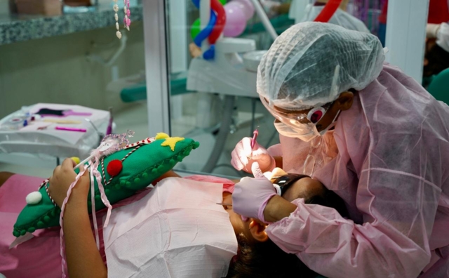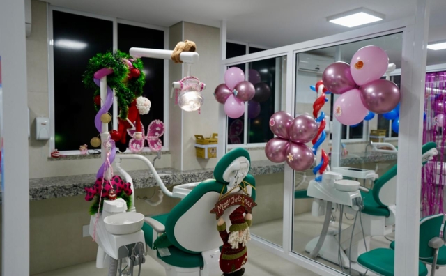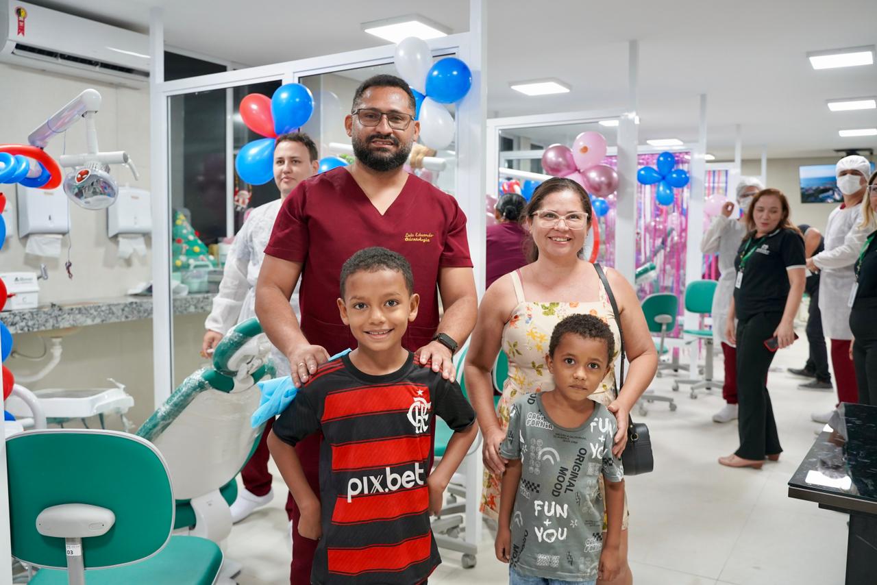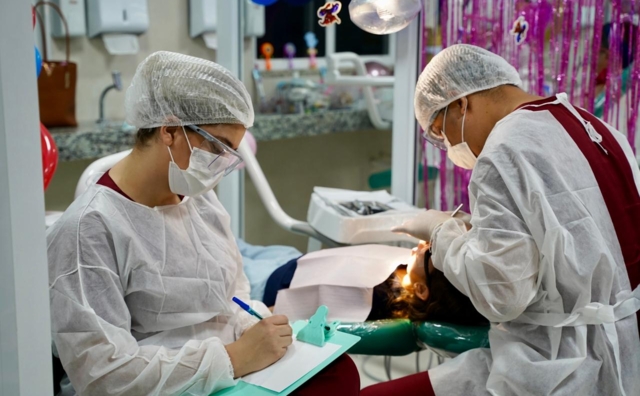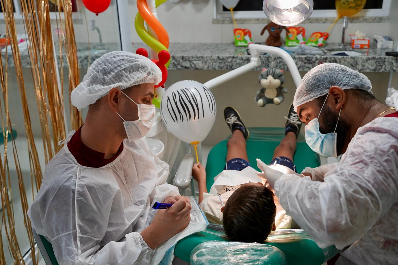 A inauguração já começou com cuidado especializado: os primeiros atendimentos foram de odontopediatria, realizados pelos acadêmicos do 5º período, sob orientação da professora Izabel Quaresma, especialista em Odontopediatria e Pacientes Especiais.