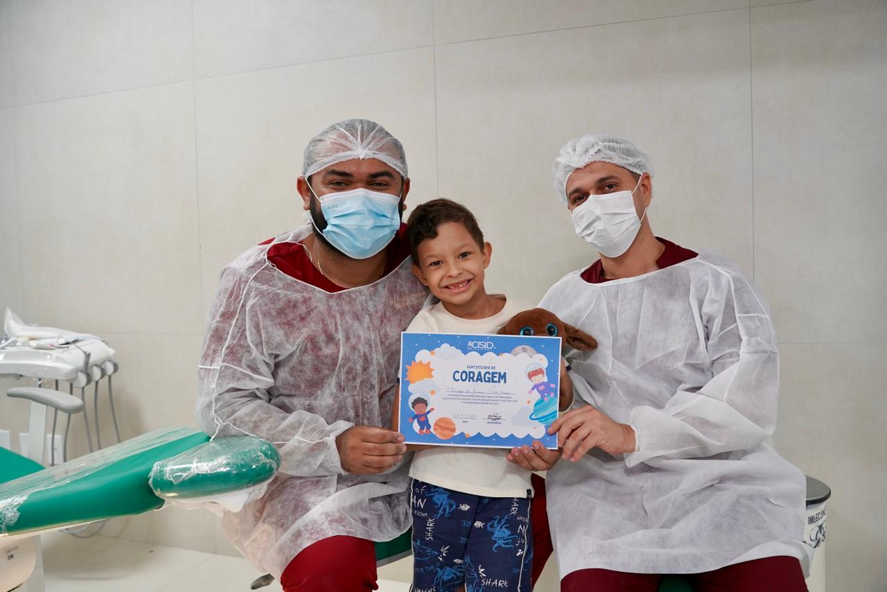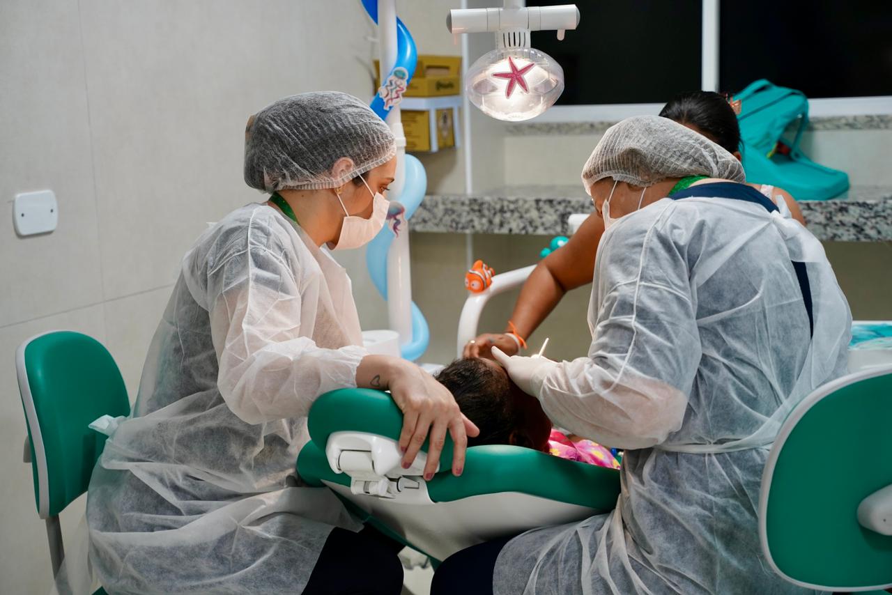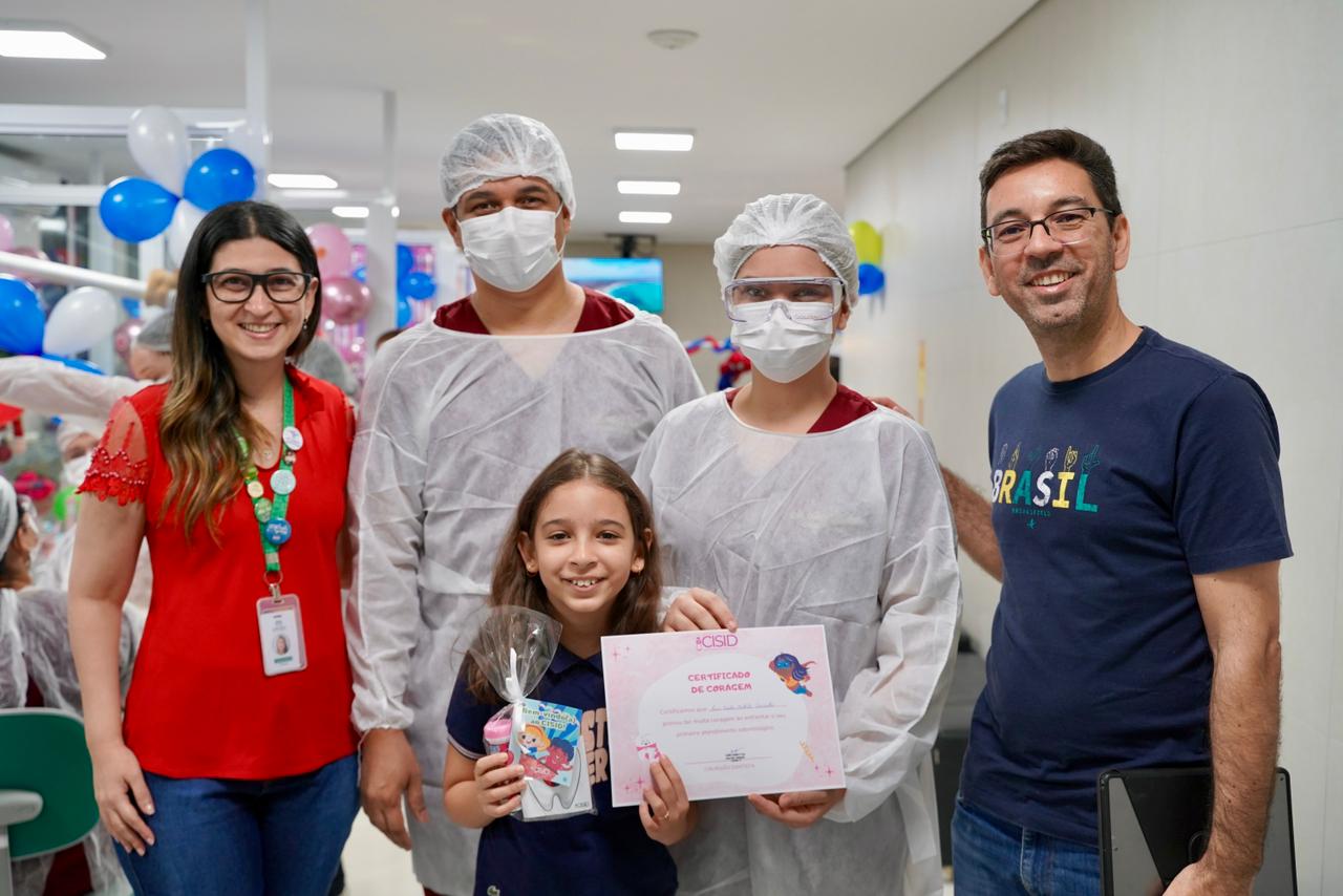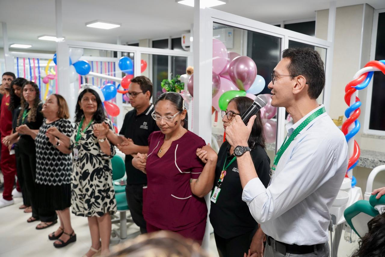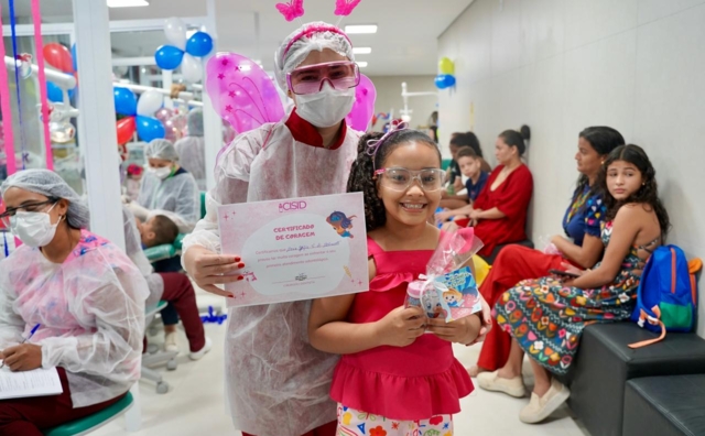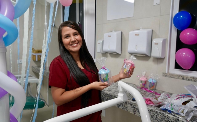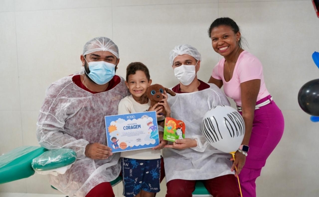 A inauguração já começou com cuidado especializado: os primeiros atendimentos foram de odontopediatria, realizados pelos acadêmicos do 5º período, sob orientação da professora Izabel Quaresma, especialista em Odontopediatria e Pacientes Especiais.