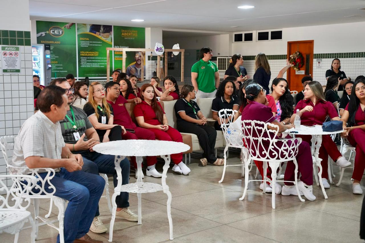 A cerimônia contou com um café da manhã especial e a presença da reitora do UNI-CET, professora Tânia Sampaio, da coordenadora do curso de Odontologia, Dra. Luana Moura, além de acadêmicos, professores e colaboradores. Para marcar a abertura, o Frei Fábio conduziu uma corrente de oração e realizou a benção do novo ambiente.