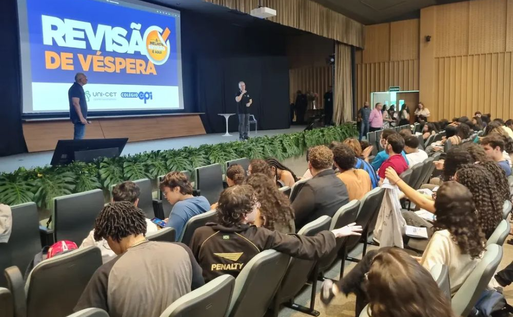 Na manhã desta sexta-feira (14), o Auditório I do UNI-CET recebeu a Revisão de Véspera para o ENEM do Colégio CPI, reunindo estudantes em um momento de foco, preparação e muita troca de conhecimento para o grande dia.