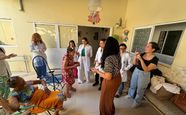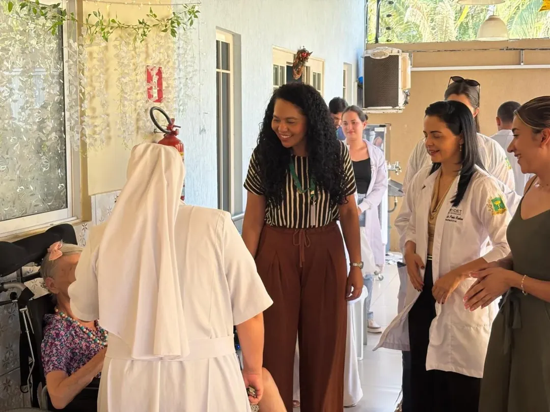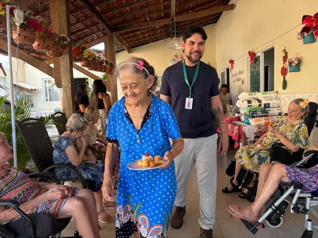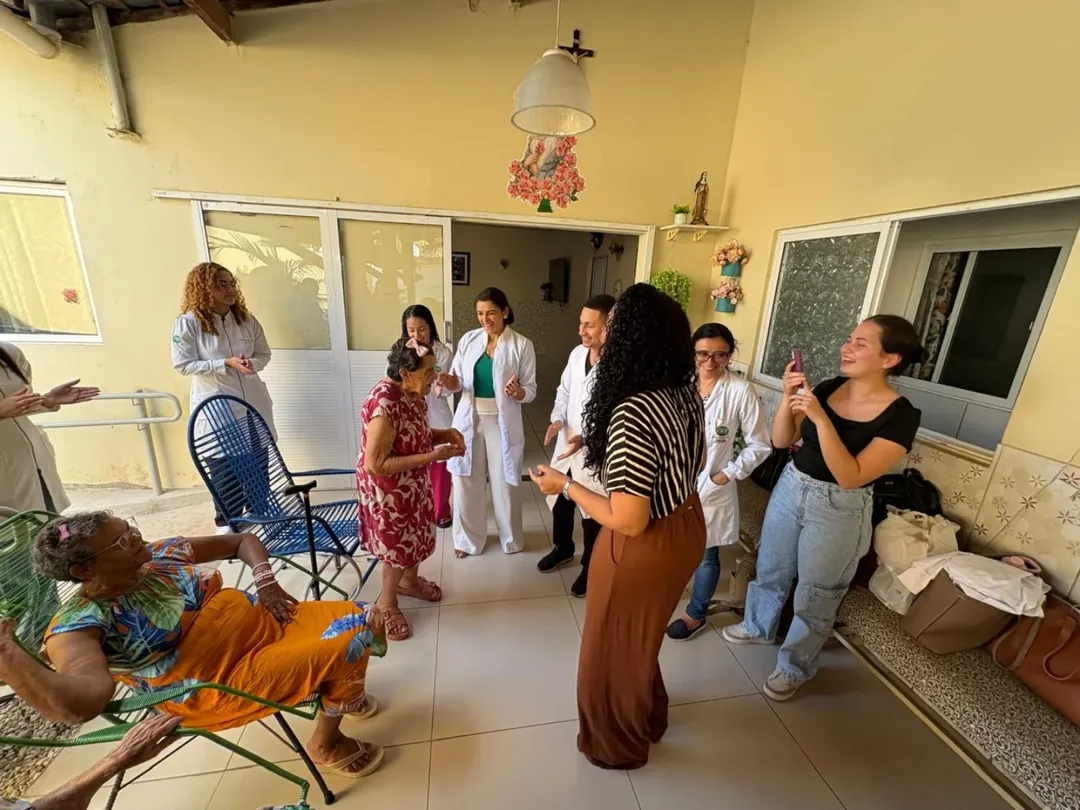 A atividade proporcionou um momento especial de recreação e convivência com idosas, visando o acolhimento, o lazer e a promoção da integração social. Para tornar a experiência ainda mais significativa, foram servidos lanches e distribuídas lembrancinhas, reforçando o cuidado e a solidariedade mútua.