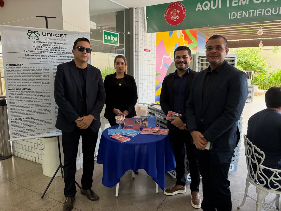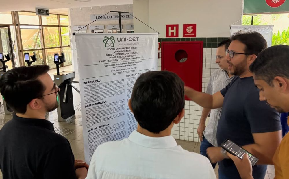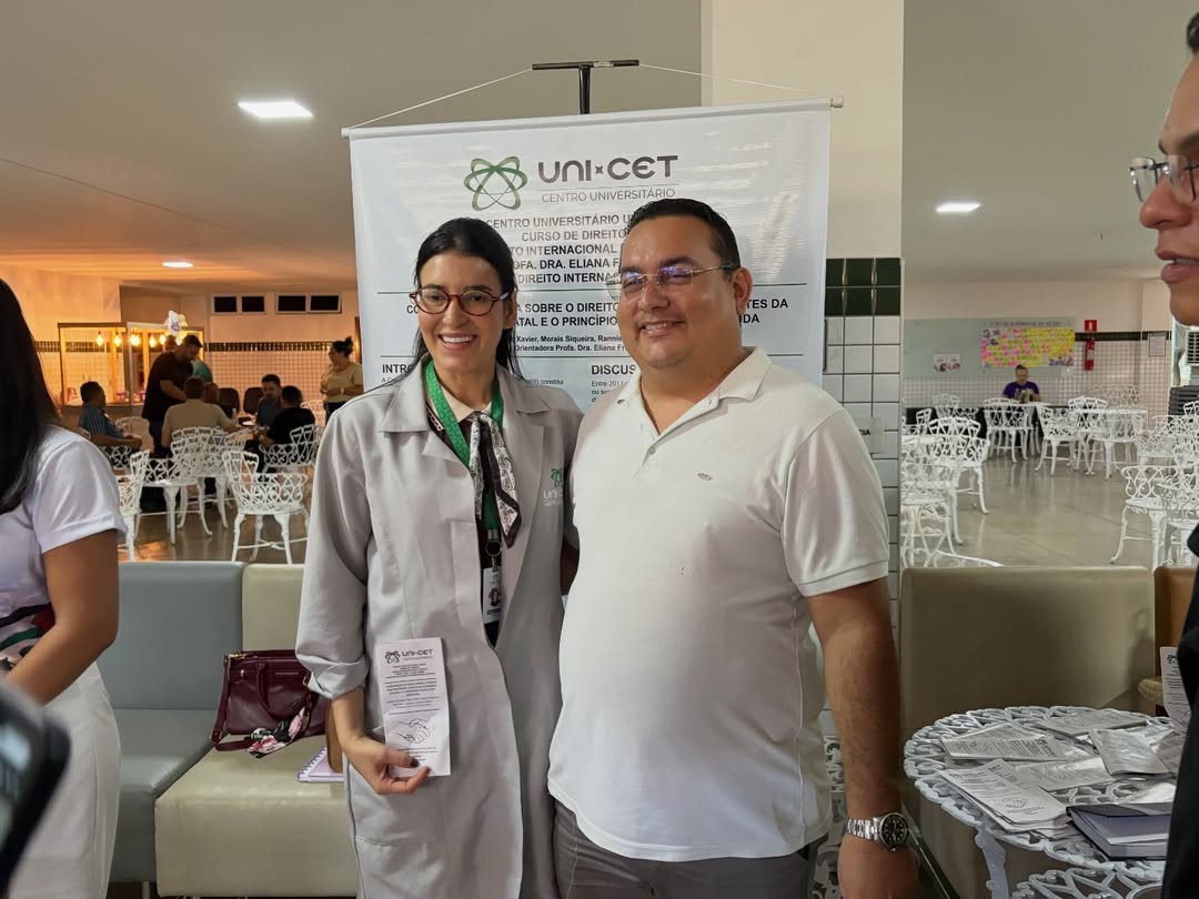 O curso de Direito do Centro Universitário UNI-CET promoveu, neste sábado (14), a I Mostra de Direito Internacional Público, atividade acadêmica desenvolvida pelos estudantes como parte das práticas da disciplina, sob orientação da professora Dra. Eliana Freire. A iniciativa criou um espaço voltado ao aprendizado, à pesquisa e ao compartilhamento de conhecimentos no ambiente universitário.