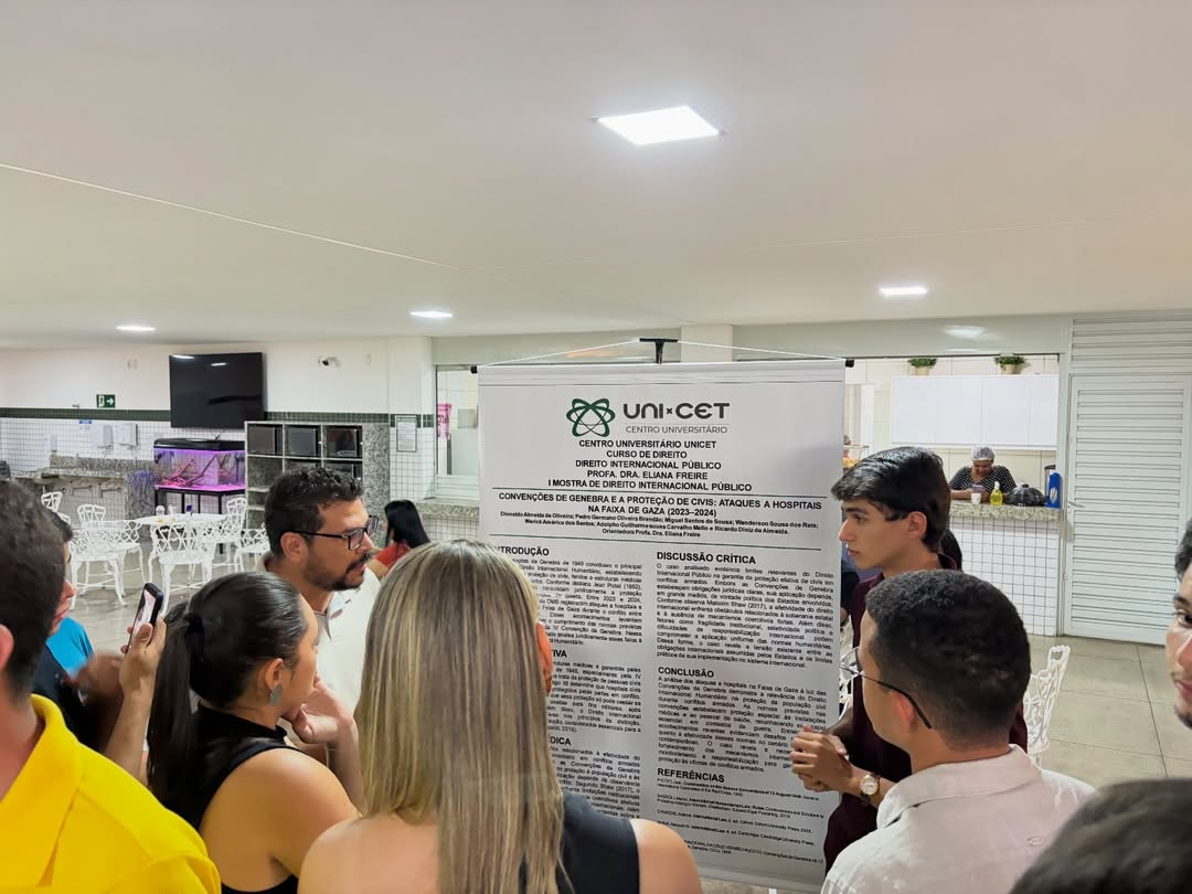 A atividade também estimulou o protagonismo discente e a troca de saberes no contexto acadêmico. Ao incentivar práticas de pesquisa, apresentação e debate, o UNI-CET reafirma seu compromisso com uma formação jurídica crítica, reflexiva e atenta às discussões que permeiam o cenário internacional.