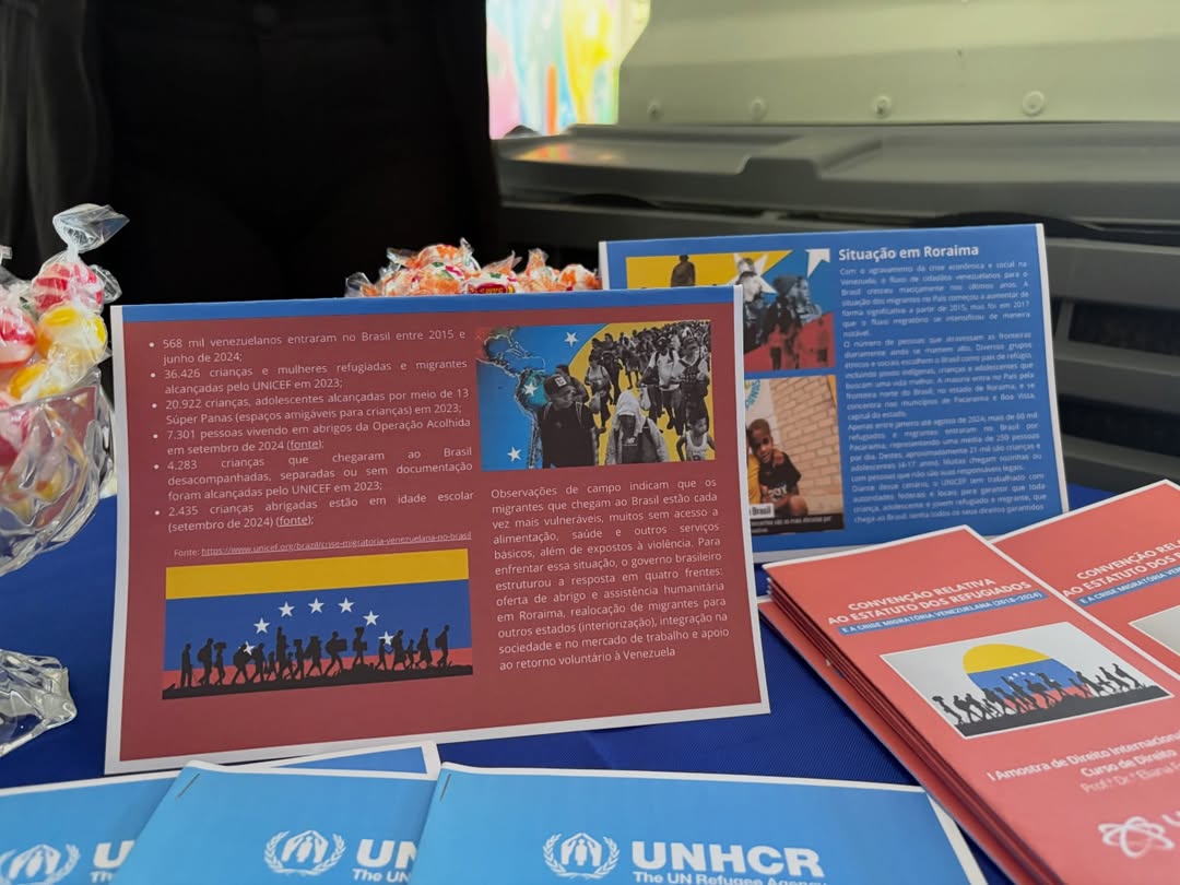 Durante a programação, os acadêmicos apresentaram banners informativos abordando diferentes temas relacionados ao Direito Internacional Público. A exposição possibilitou que estudantes, professores e colaboradores da instituição tivessem acesso a conteúdos que discutem aspectos relevantes das relações entre Estados, organismos internacionais e a sociedade moderna.