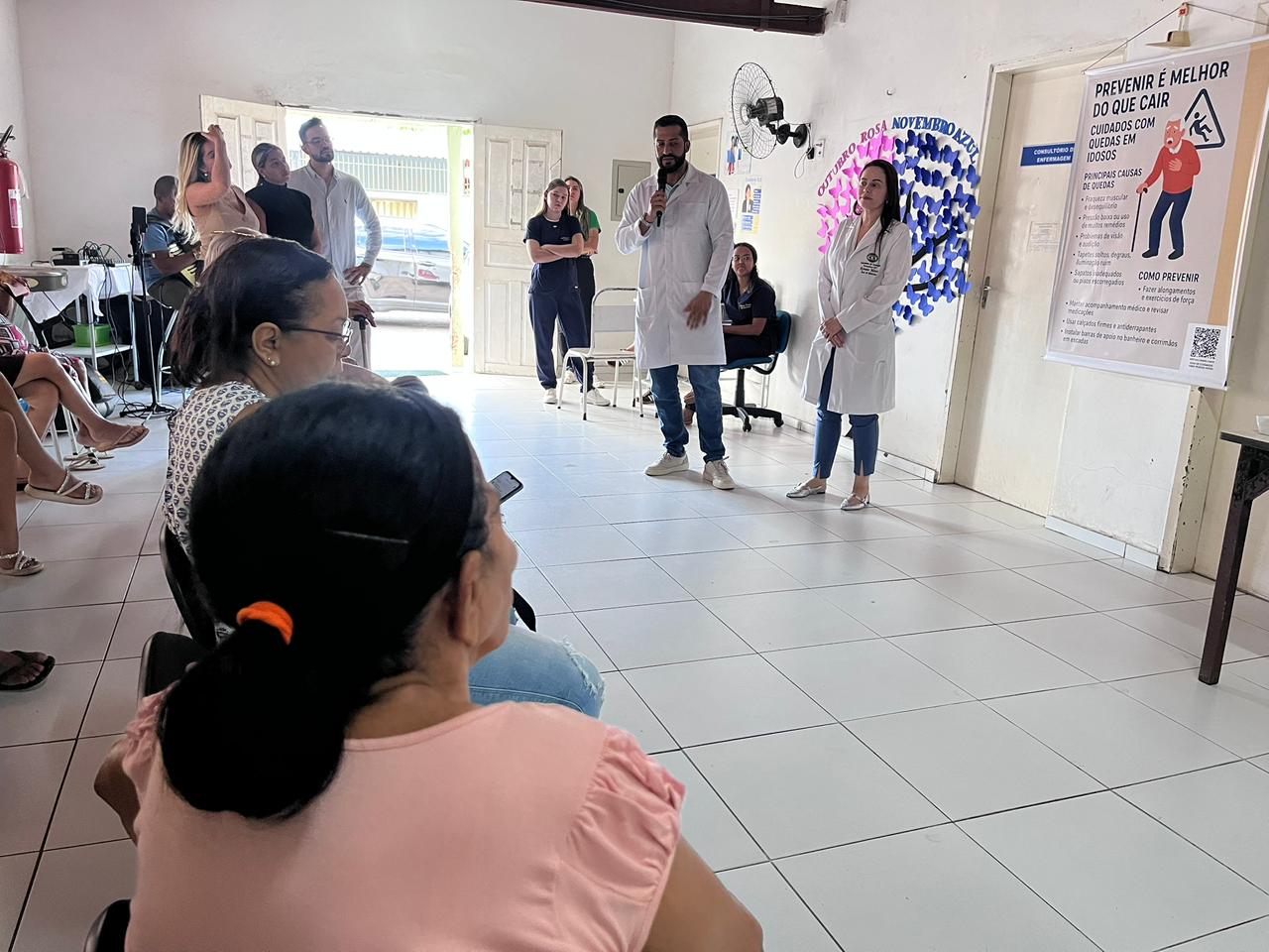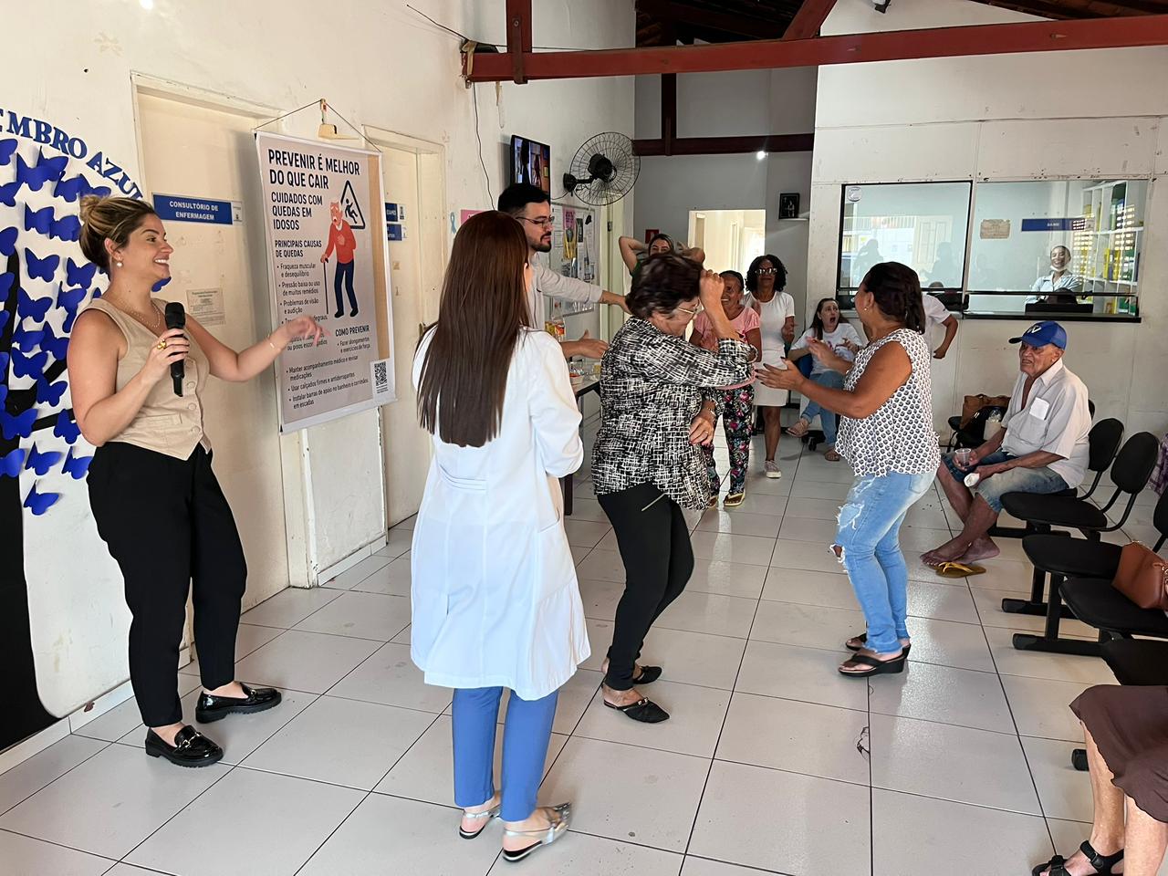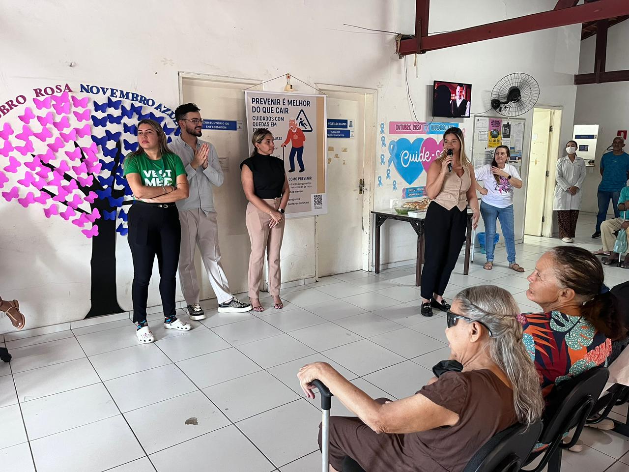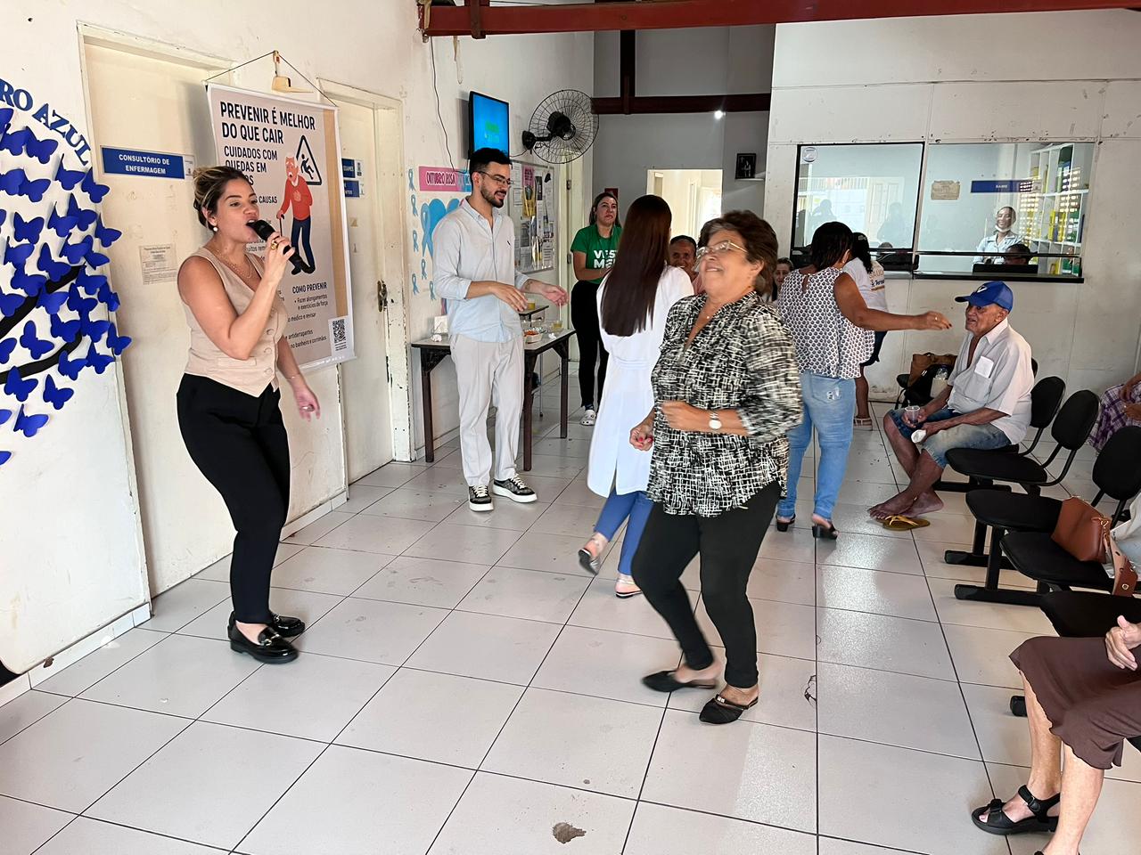 Durante a atividade, os acadêmicos abordaram temas fundamentais para a saúde da pessoa idosa, como a prevenção de quedas, a importância de uma alimentação equilibrada e a prática regular de exercícios físicos, reforçando cuidados essenciais para uma vida mais ativa e segura.