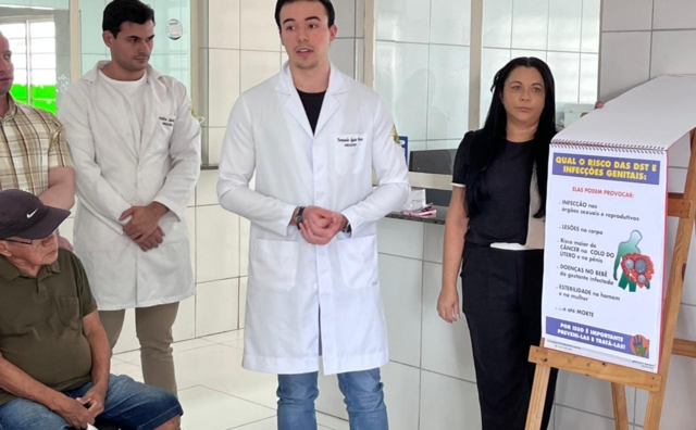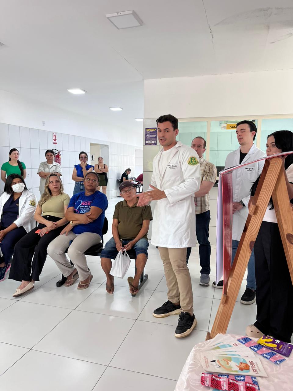A atividade foi supervisionada pelo médico e preceptor da unidade, Dr. Adélman Villa, que acompanhou os acadêmicos durante o bate-papo com os pacientes. De forma leve e acessível, os estudantes abordaram o que são as ISTs, os principais sintomas, formas de transmissão, fatores de risco e medidas de prevenção, com destaque para o uso do preservativo e a importância de buscar orientação médica diante de qualquer sinal ou dúvida.