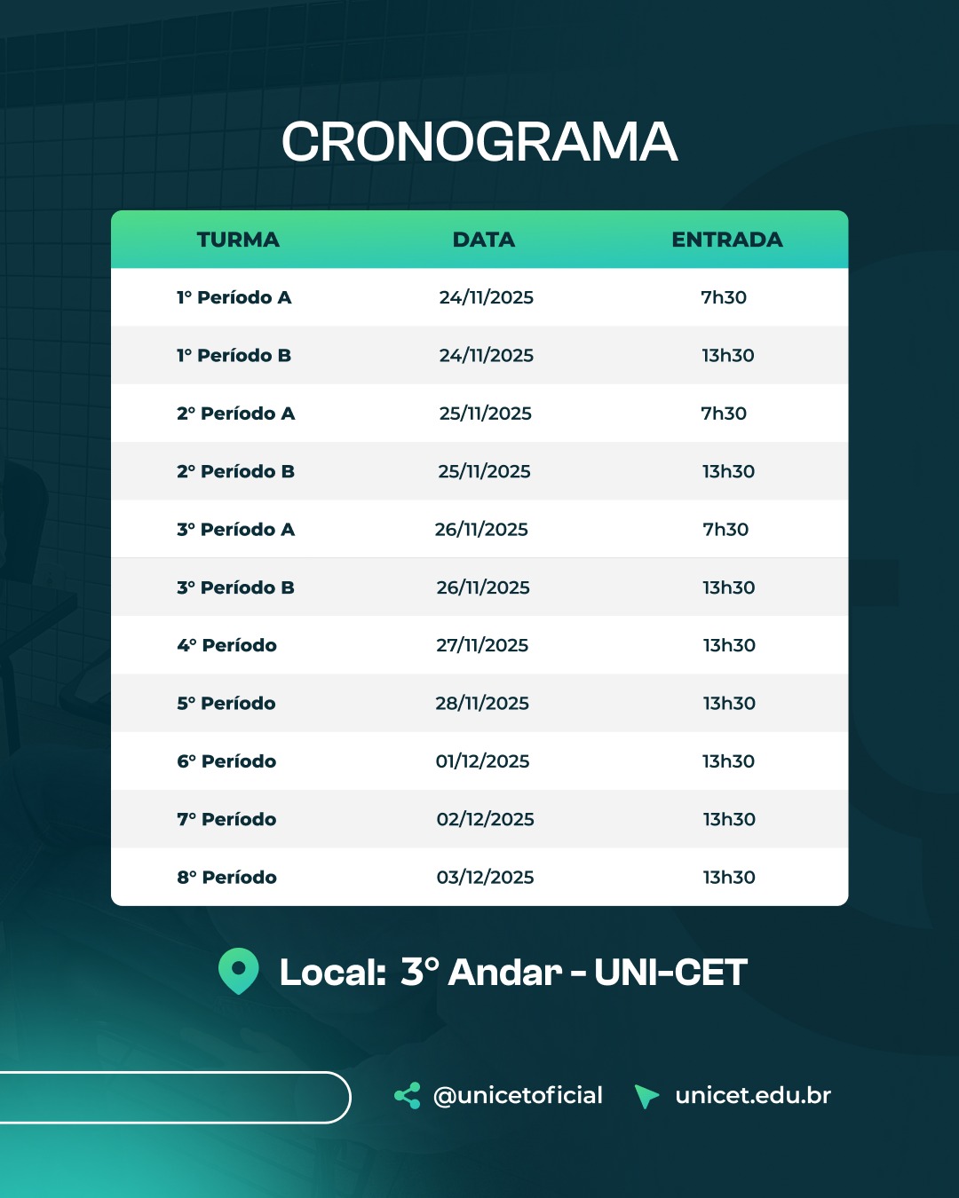 Entre os dias 24 de novembro e 04 de dezembro, acontece o Exame Clínico Objetivo Estruturado (Objective Structured Clinical Examination – OSCE) 2025.2. Aplicado semestralmente do 1º ao 8º período do curso de Medicina, o OSCE avalia competências, habilidades clínicas e atitudes essenciais para a formação médica.