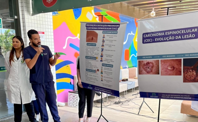 “Realizamos o projeto de extensão com o tema Dezembro Laranja para que os alunos do 6º período discutam as principais formas de câncer de pele, as estratégias de prevenção e a importância do diagnóstico precoce para alcançar a cura. Quanto mais cedo identificamos as lesões, melhores são os resultados. É essencial que os estudantes compreendam isso e difundam essas orientações na comunidade”, destacou o dermatologista.