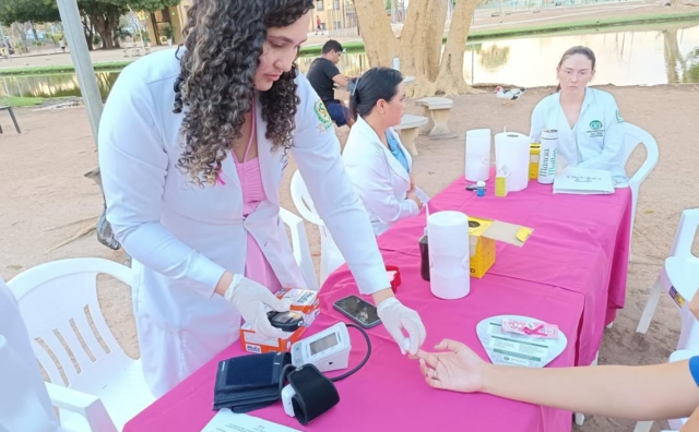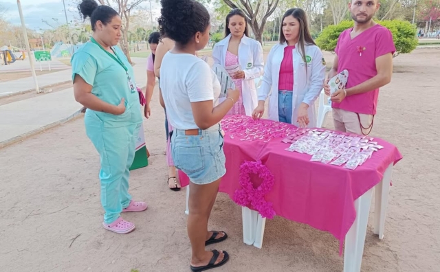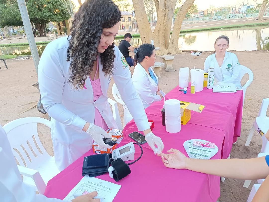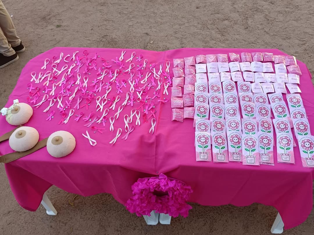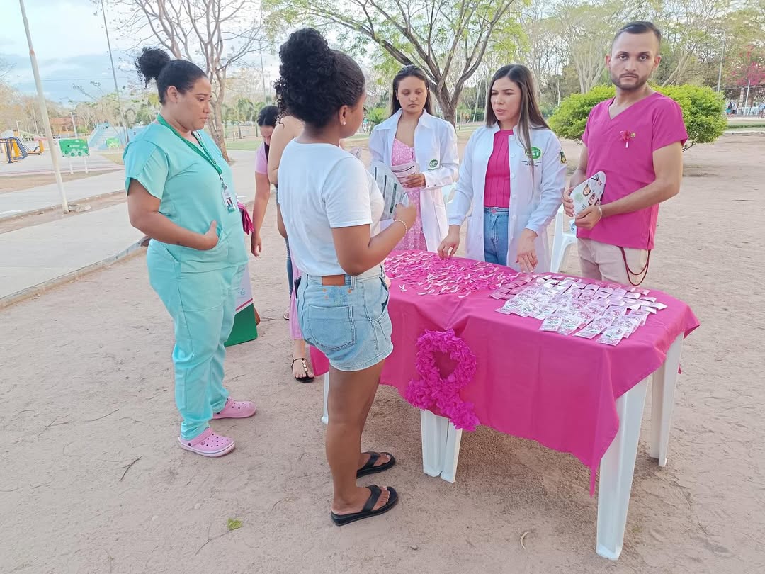 Durante a ação, os estudantes realizaram orientações sobre hábitos de vida saudáveis, distribuição de materiais informativos e laços rosas, além de atividades educativas voltadas à promoção da saúde da mulher. O projeto buscou despertar na comunidade a importância do autocuidado e da atenção à saúde mamária, reforçando que a prevenção é o caminho mais eficaz para o enfrentamento do câncer de mama.
