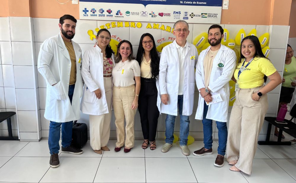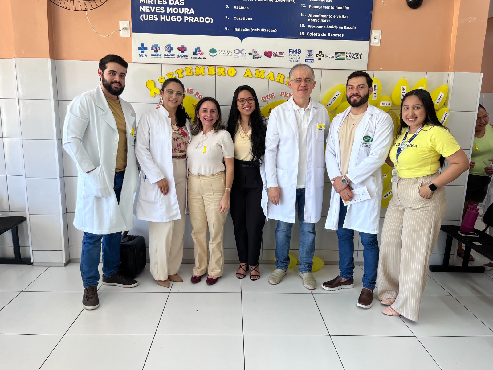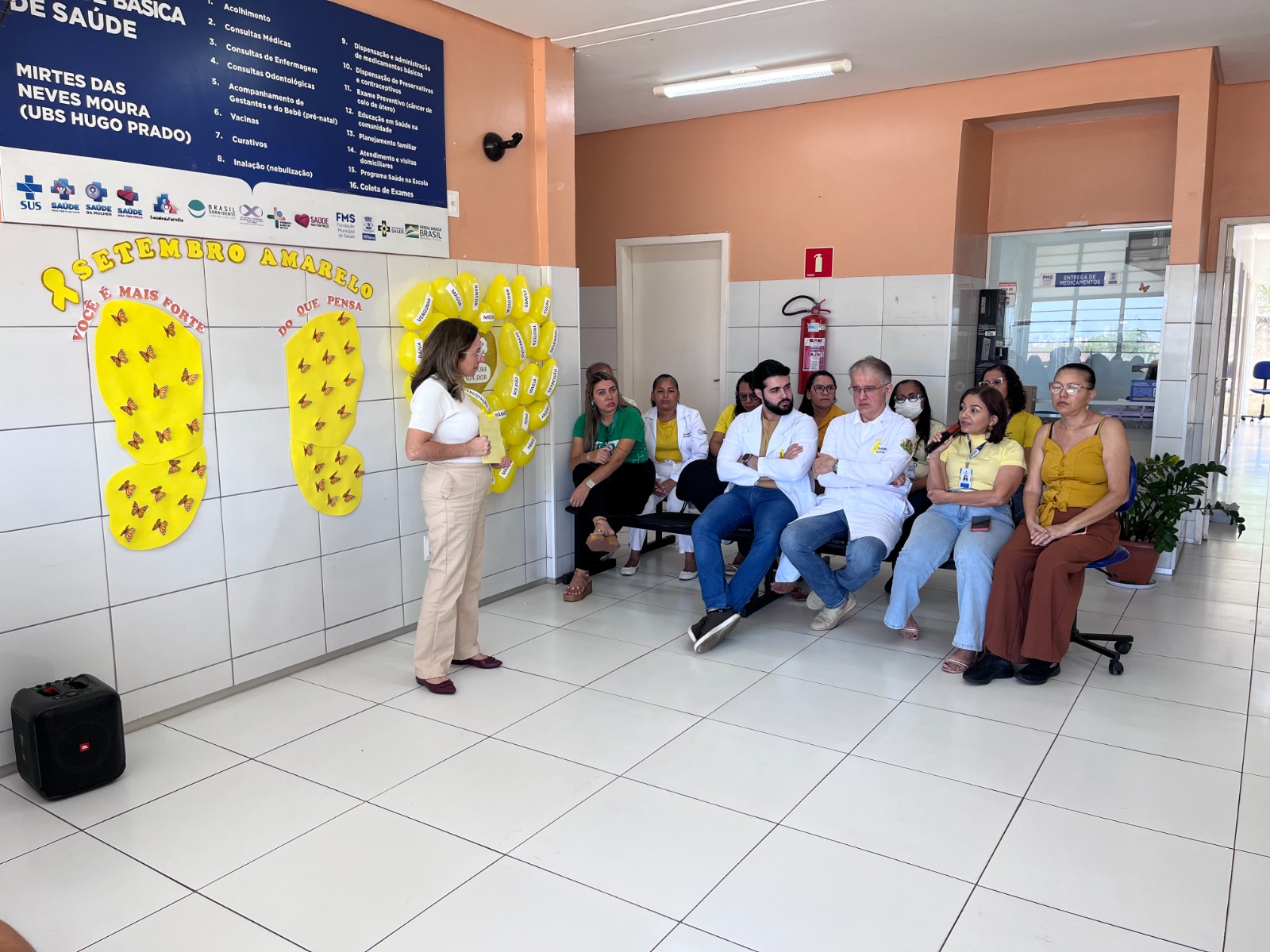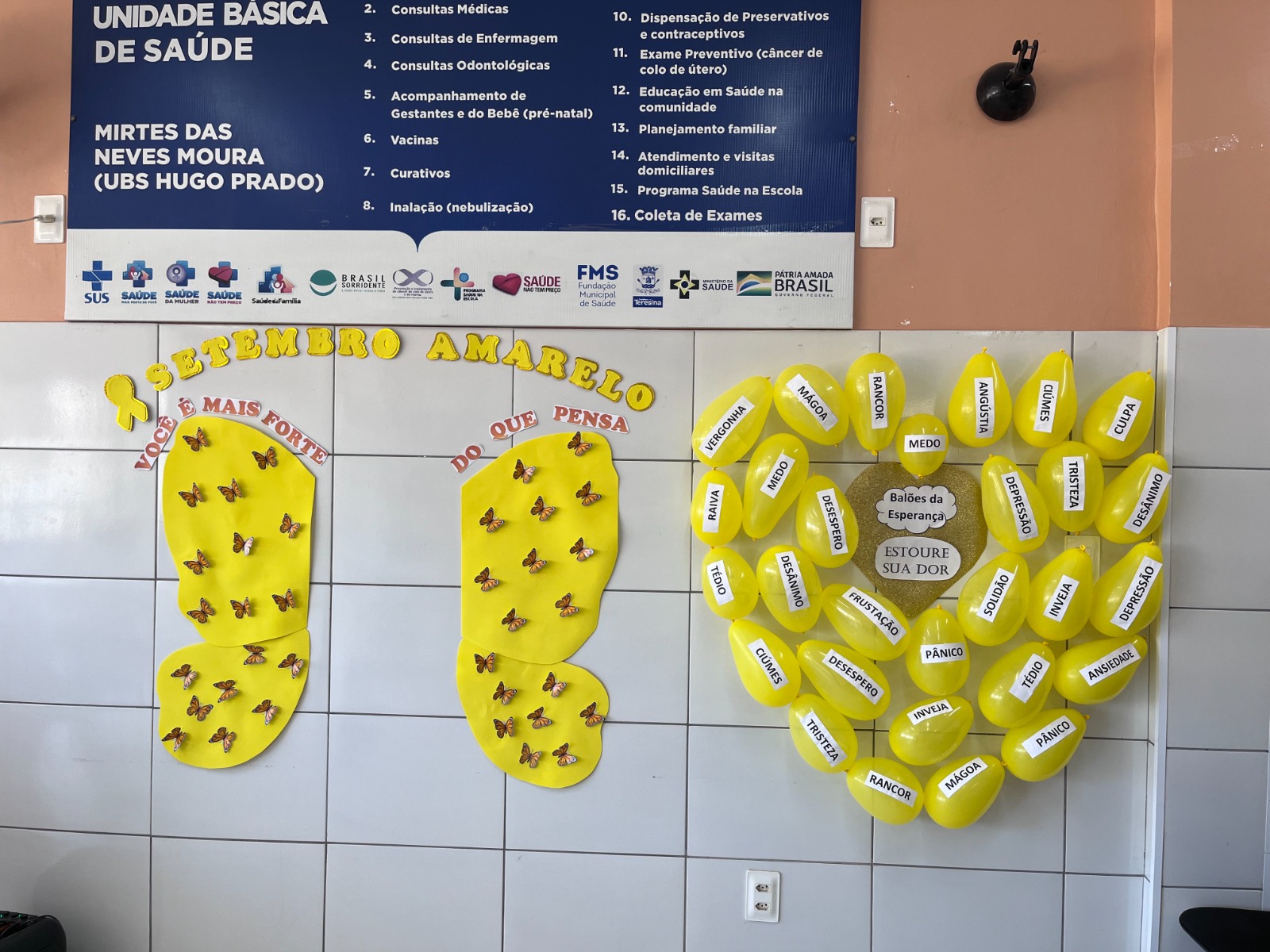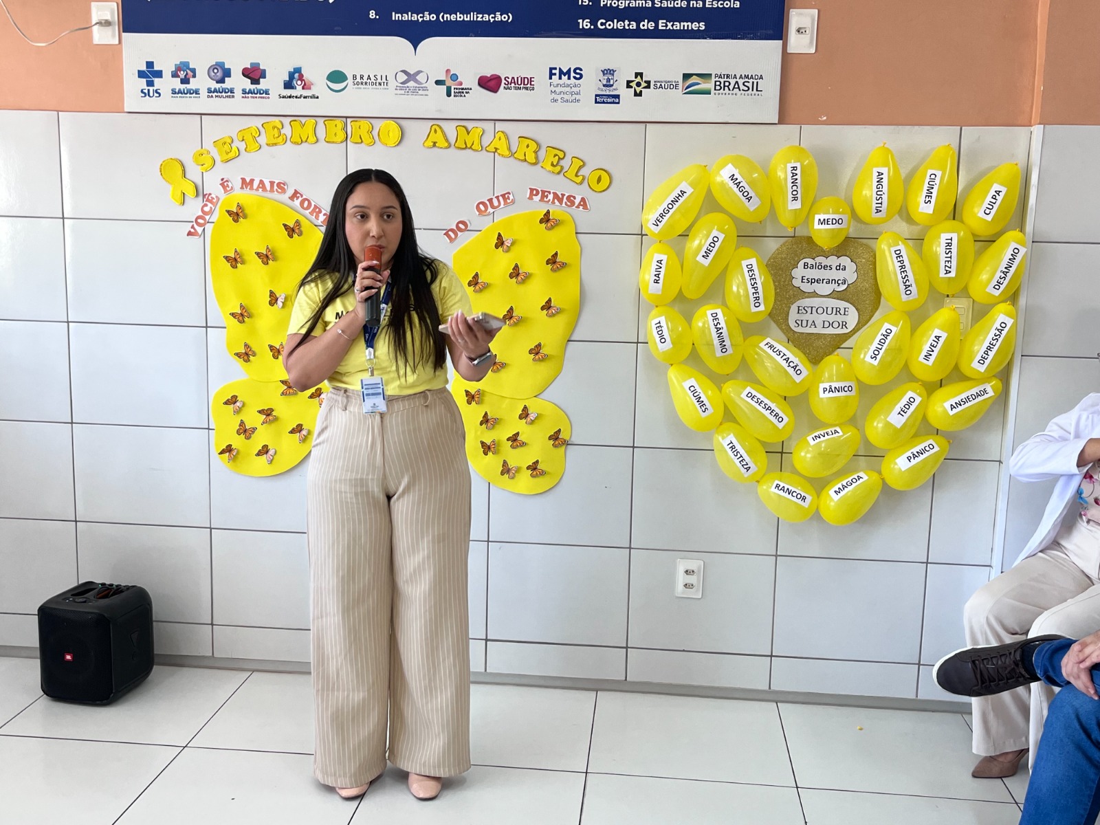 A convite da professora Dra. Karlla Monteiro, preceptora do internato de Medicina do UNI-CET, e da coordenadora da UBS Hugo Prado, Mariane Ximenes, a psicóloga Kátia Cilene participou, nesta quarta-feira (24), de um momento especial de diálogo com a comunidade do bairro Hugo Prado, em alusão à campanha Setembro Amarelo.
