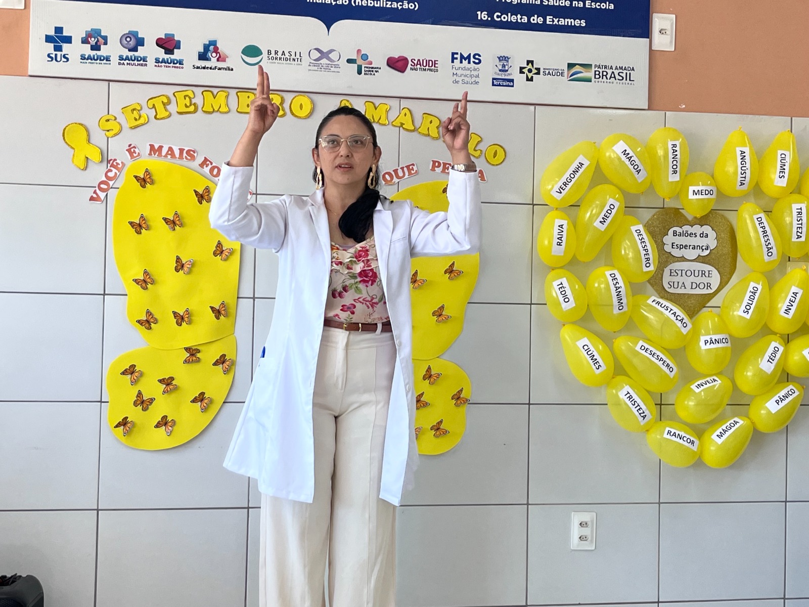 Além da conversa, a programação contou com apresentações de canto, mensagens motivadoras, uma encenação educativa sobre como oferecer apoio a um amigo em situação de risco e uma emocionante apresentação em Libras. O momento também destacou o Setembro Azul, campanha dedicada à valorização da comunidade surda, reforçando a importância da inclusão, do respeito e da acessibilidade.