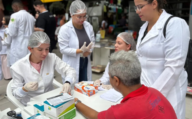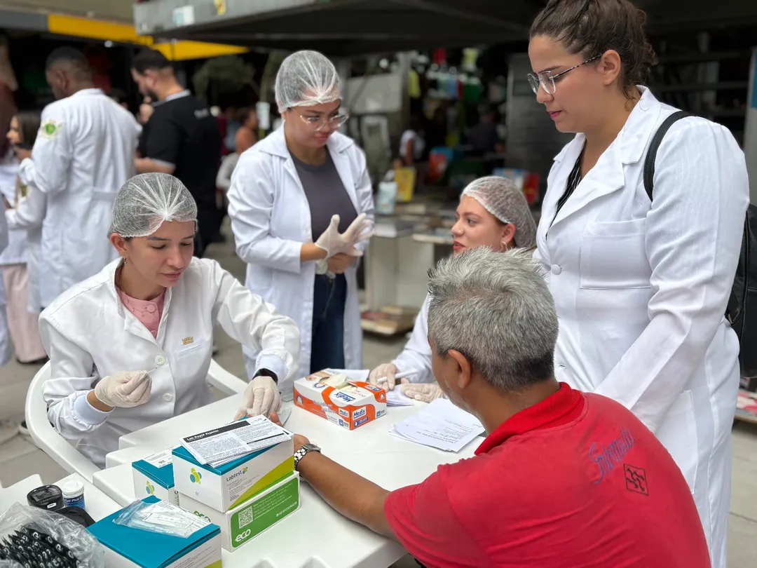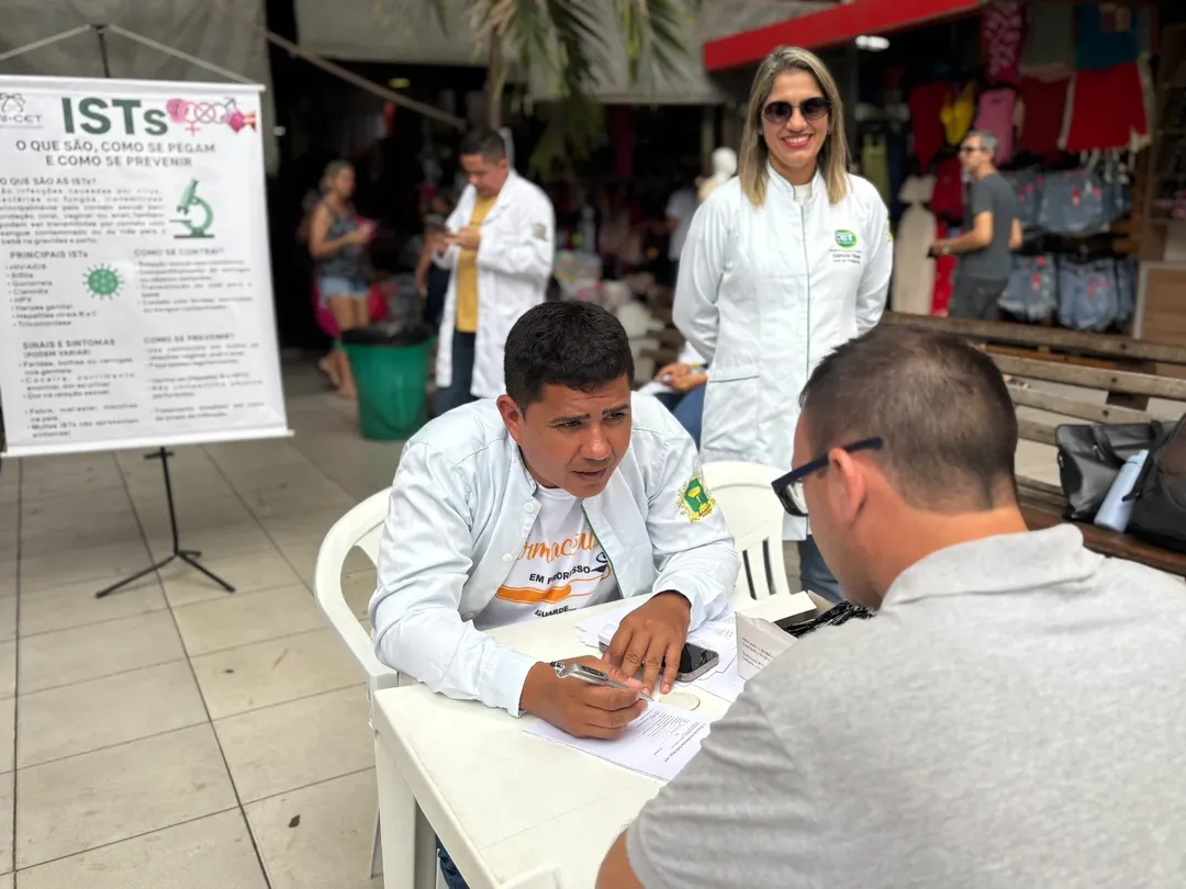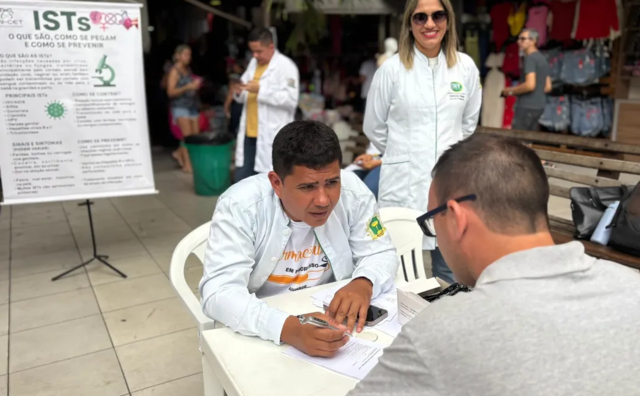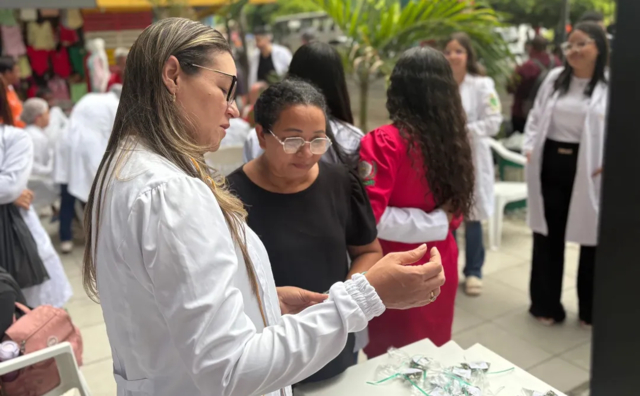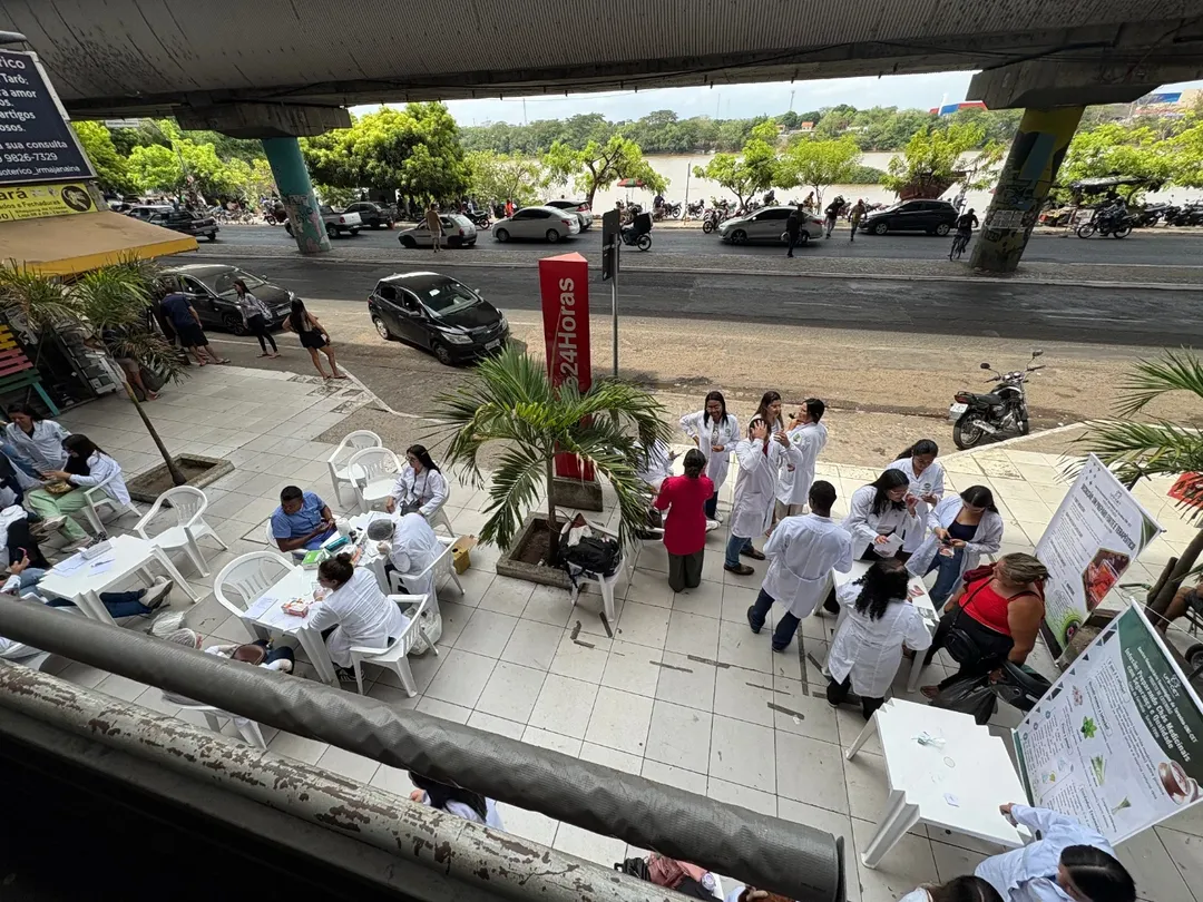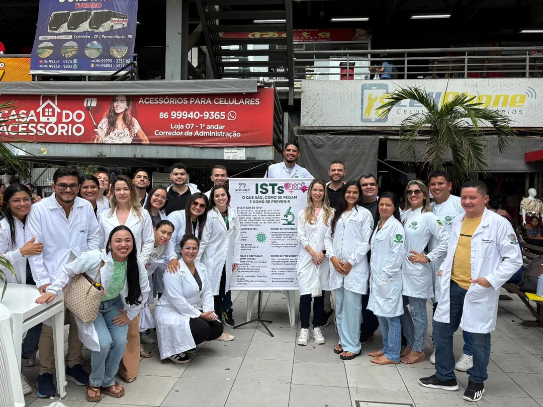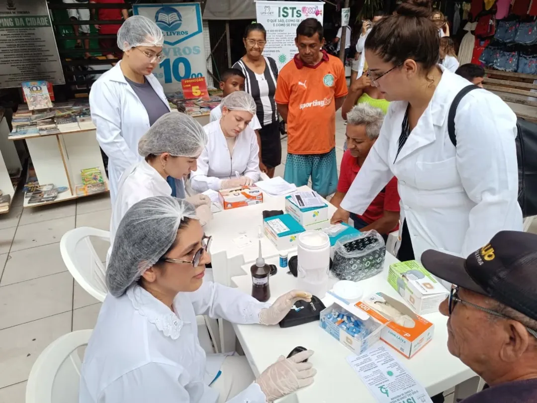Somado a isso, houve também uma ação sobre conscientização e prevenção das ISTs por meio de banners explicativos e orientações educativas, na qual os alunos esclareceram sobre os meios de transmissão, fizeram testes rápidos, aferiram pressão e glicemia, além da entrega de preservativos.