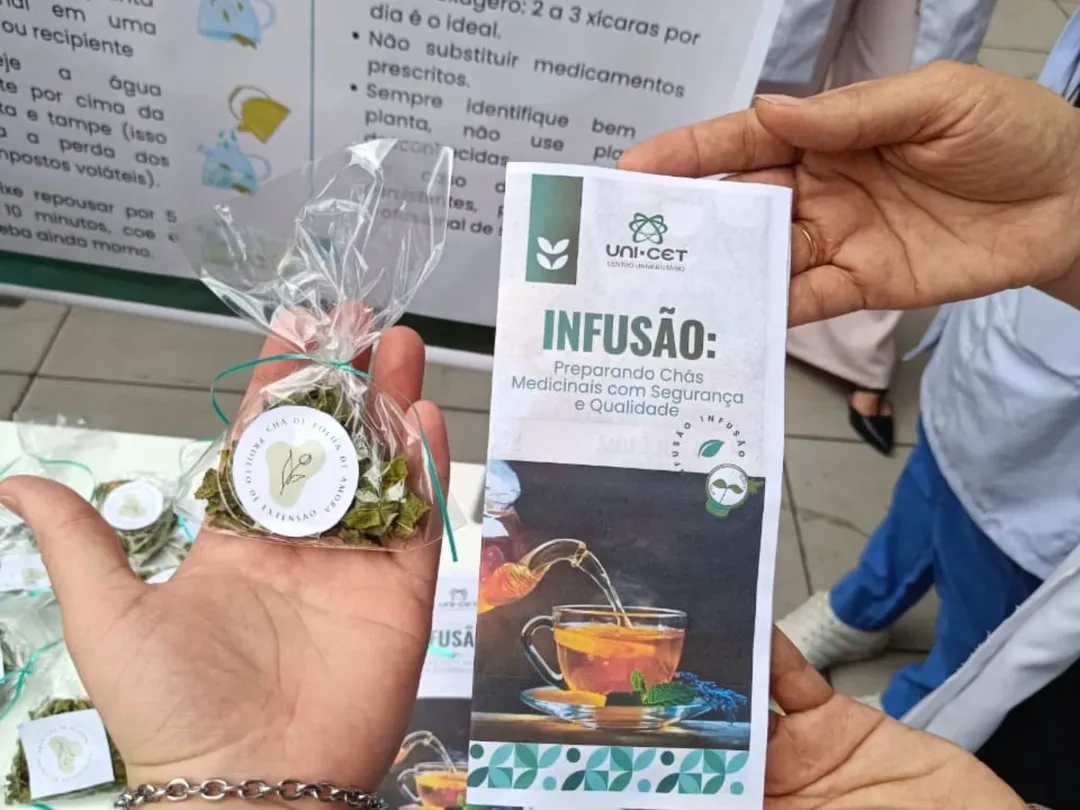 Durante a atividade, foram distribuídos materiais informativos que abordavam as técnicas corretas de infusão, reforçando a importância do uso consciente e seguro das plantas medicinais.