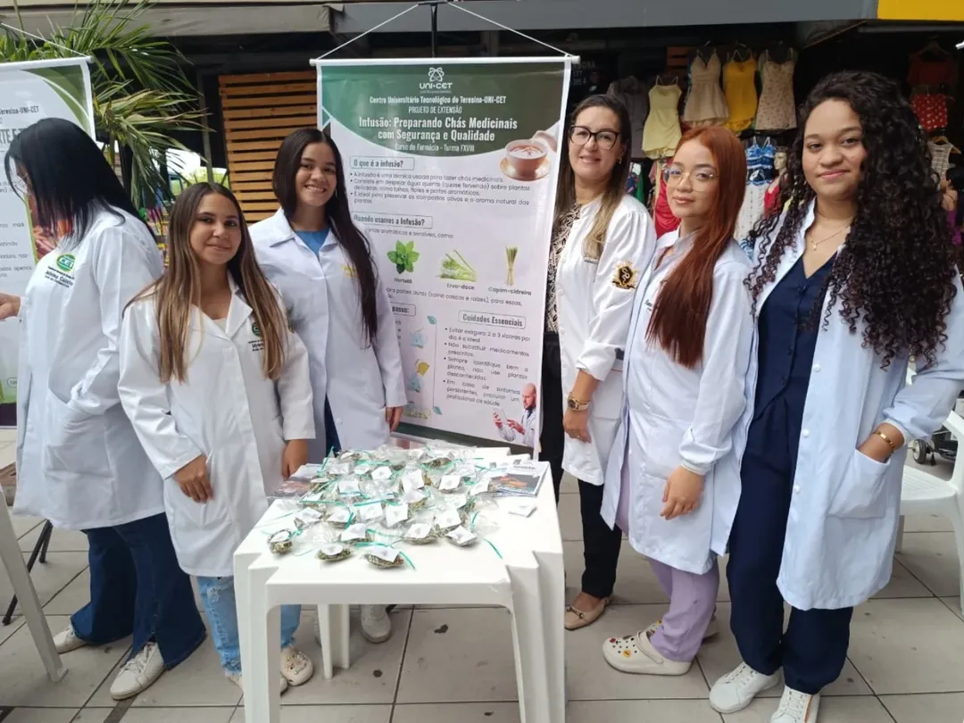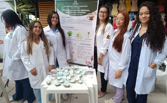 Levando conhecimento científico e técnico sobre o uso correto das plantas medicinais, a turma de Farmácia F13 promoveu a atividade de Extensão “Infusão: Preparando chás com segurança e qualidade”, na sexta-feira (12), no Shopping da Cidade, visando orientar a população quanto ao preparo adequado dos chás, preservando suas propriedades terapêuticas.