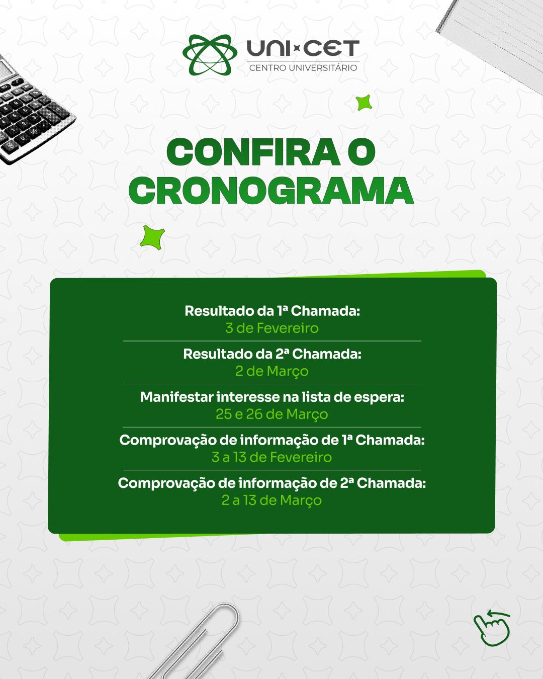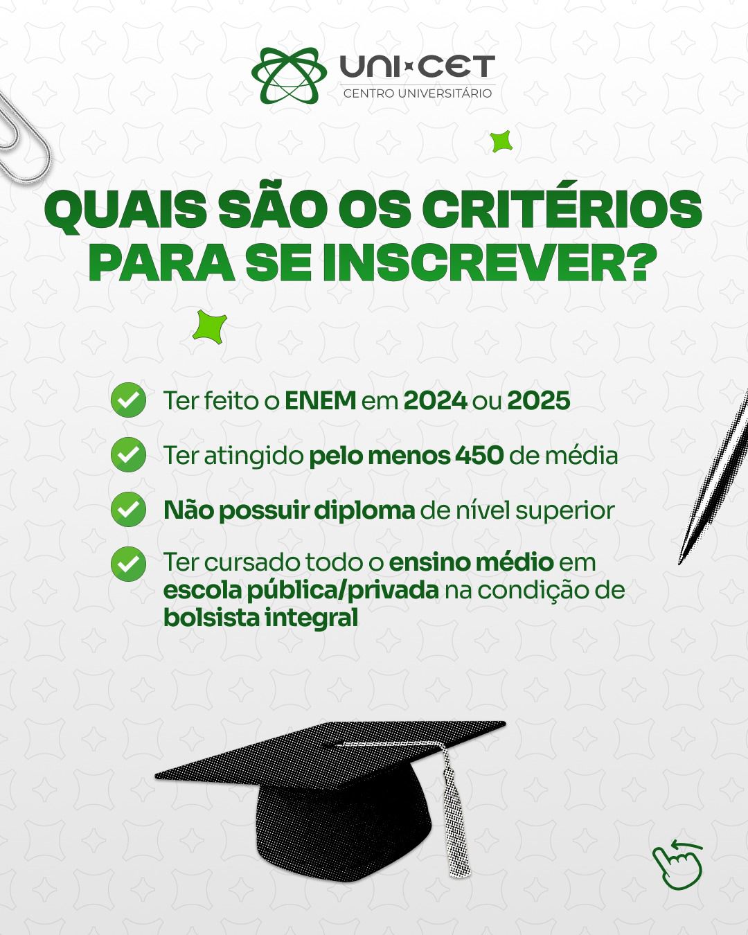 No Centro Universitário UNI-CET, esforço e dedicação podem se traduzir em acesso ao ensino superior e em uma formação comprometida com o futuro profissional. A instituição segue fortalecendo seu compromisso com a inclusão e com a realização de sonhos por meio da Educação.