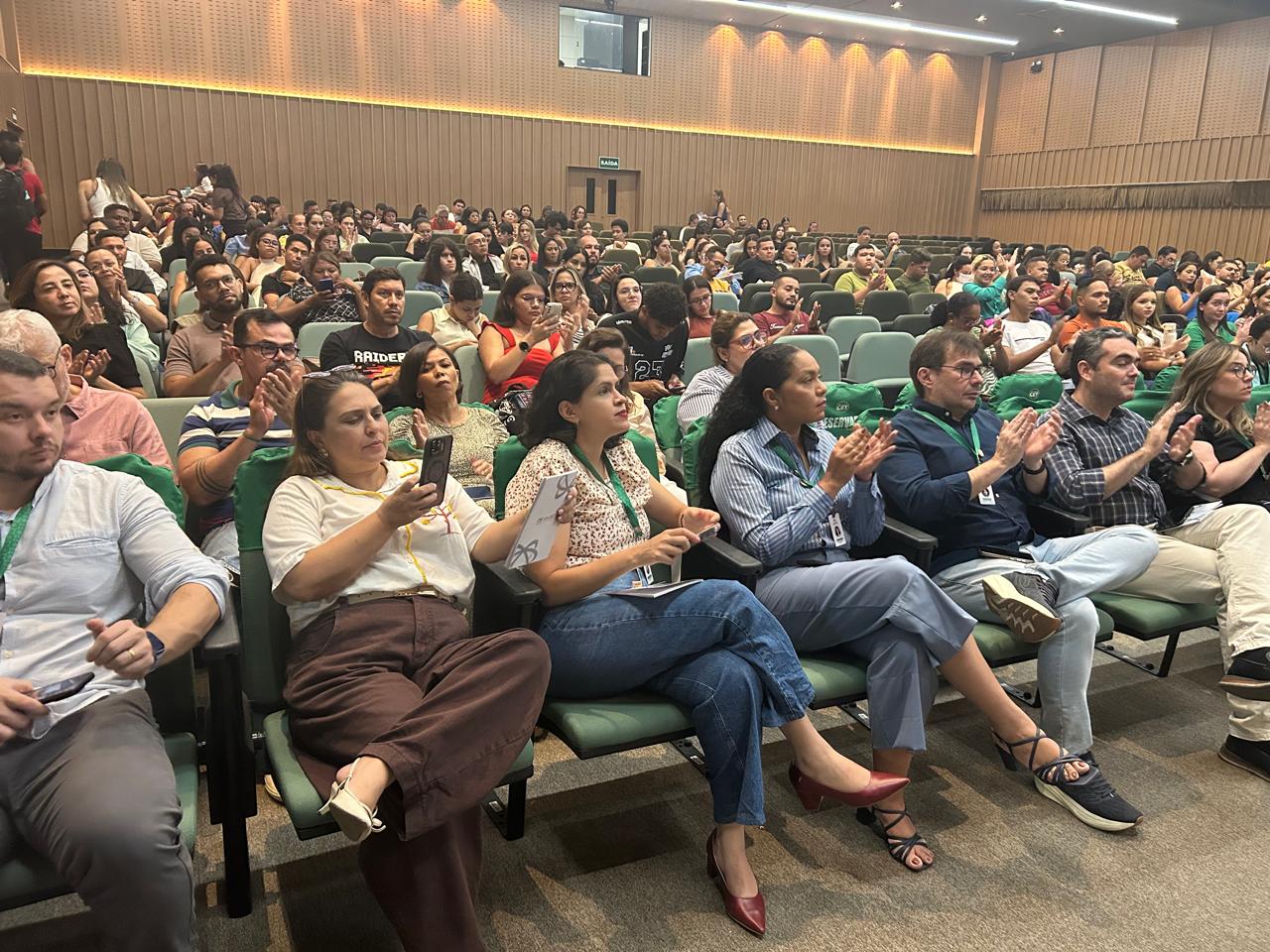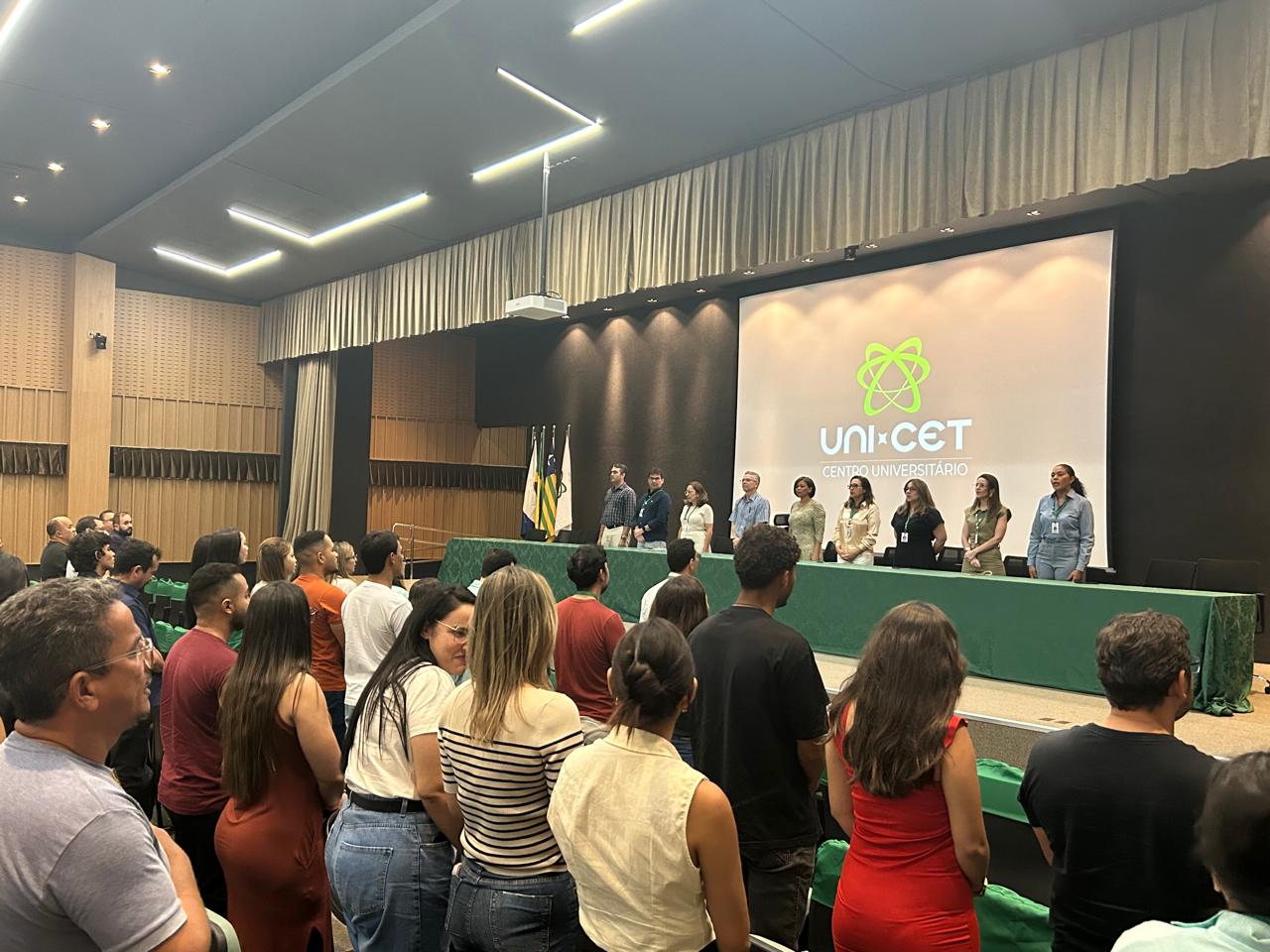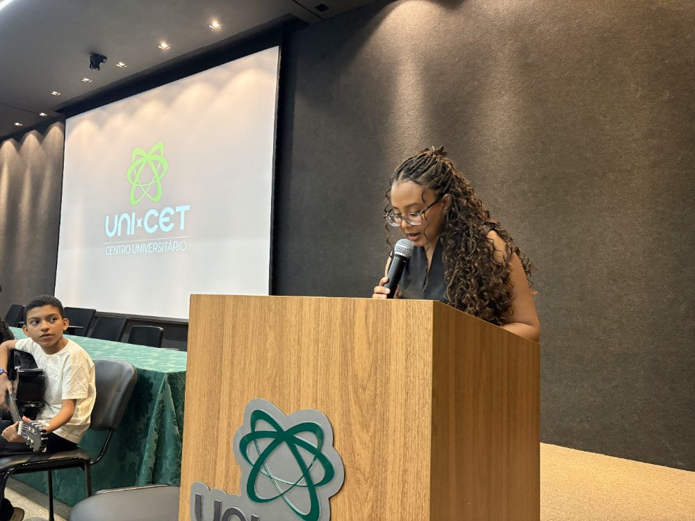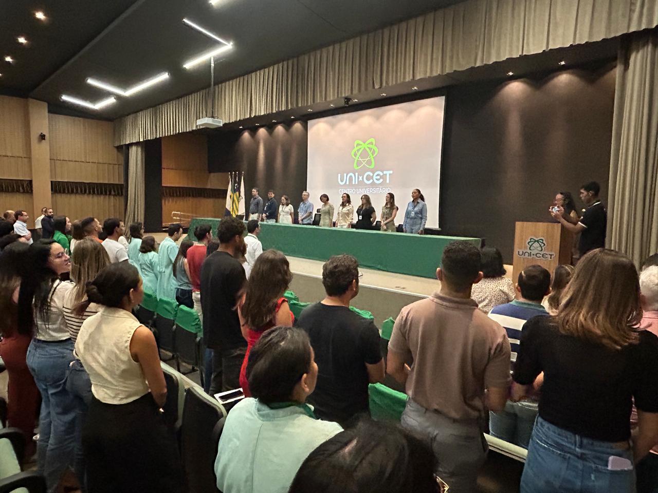 A programação seguiu com a execução do Hino Nacional e as falas da reitora, Tânia Sampaio, da Profa. Katia Cilene e da Profa. Thiara Lorenna, reforçando o empenho da instituição com a formação acadêmica e o desenvolvimento contínuo dos estudantes.