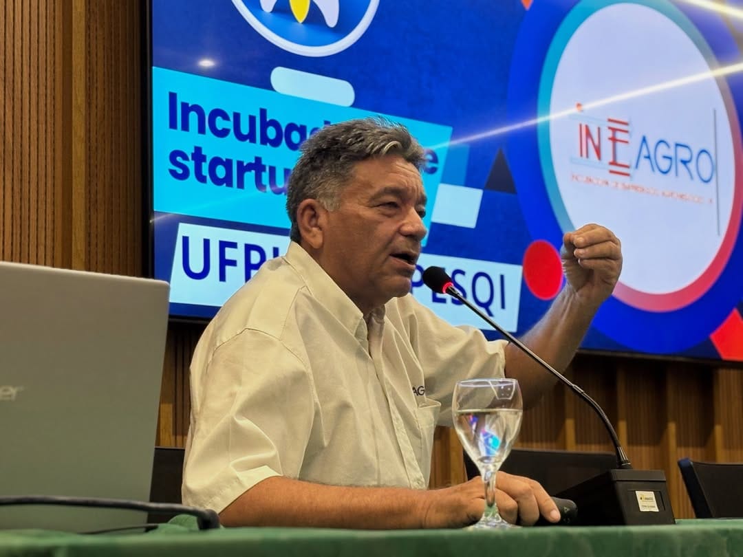 Em seguida, o Me. Luiz Augusto de Oliveira, diretor da INEAGRO e professor da Universidade Federal do Piauí (UFPI), abordou o papel das incubadoras de empresas na promoção do agronegócio sustentável e tecnológico, destacando os resultados de projetos que unem ciência e produtividade no campo.