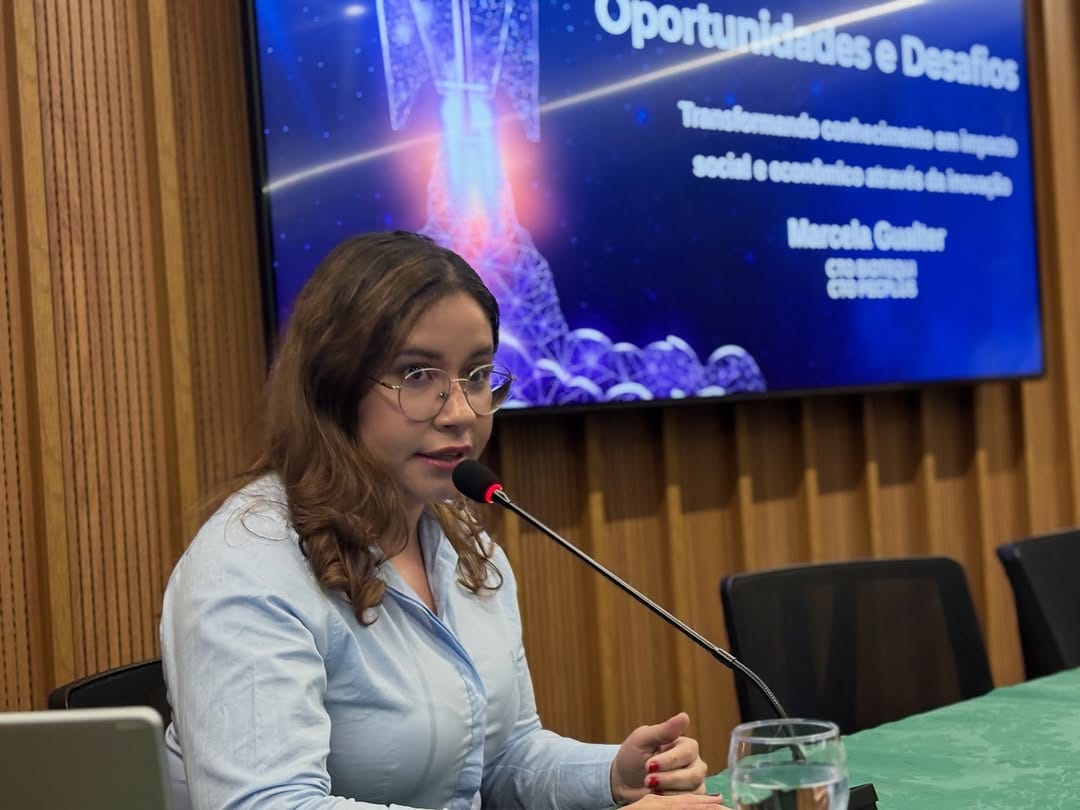 Encerrando a programação, a Mestranda Marcela Pereira Gualter, da Universidade Federal do Piauí (UFPI), apresentou o case de sucesso da BIOTEQUI – Reprodução Animal e Melhoramento Genético, compartilhando sua trajetória como pesquisadora empreendedora e as oportunidades de inovação dentro da academia.