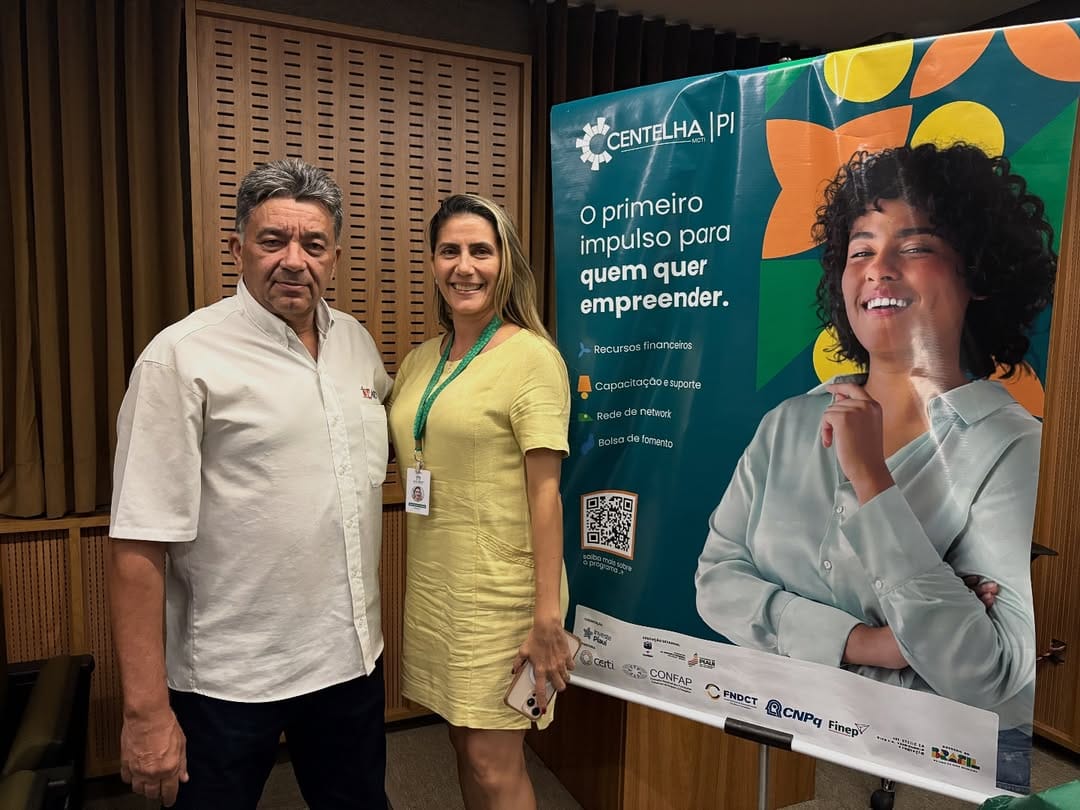O Dr. Helano Diógenes Pinheiro, assessor técnico da Fundação de Amparo à Pesquisa do Estado do Piauí (FAPEPI) e professor da Universidade Estadual do Piauí (UESPI), apresentou o Programa Centelha/Piauí, iniciativa que estimula ideias inovadoras com fomento de até R$ 130 mil, incentivando o surgimento de novos negócios e startups no estado.