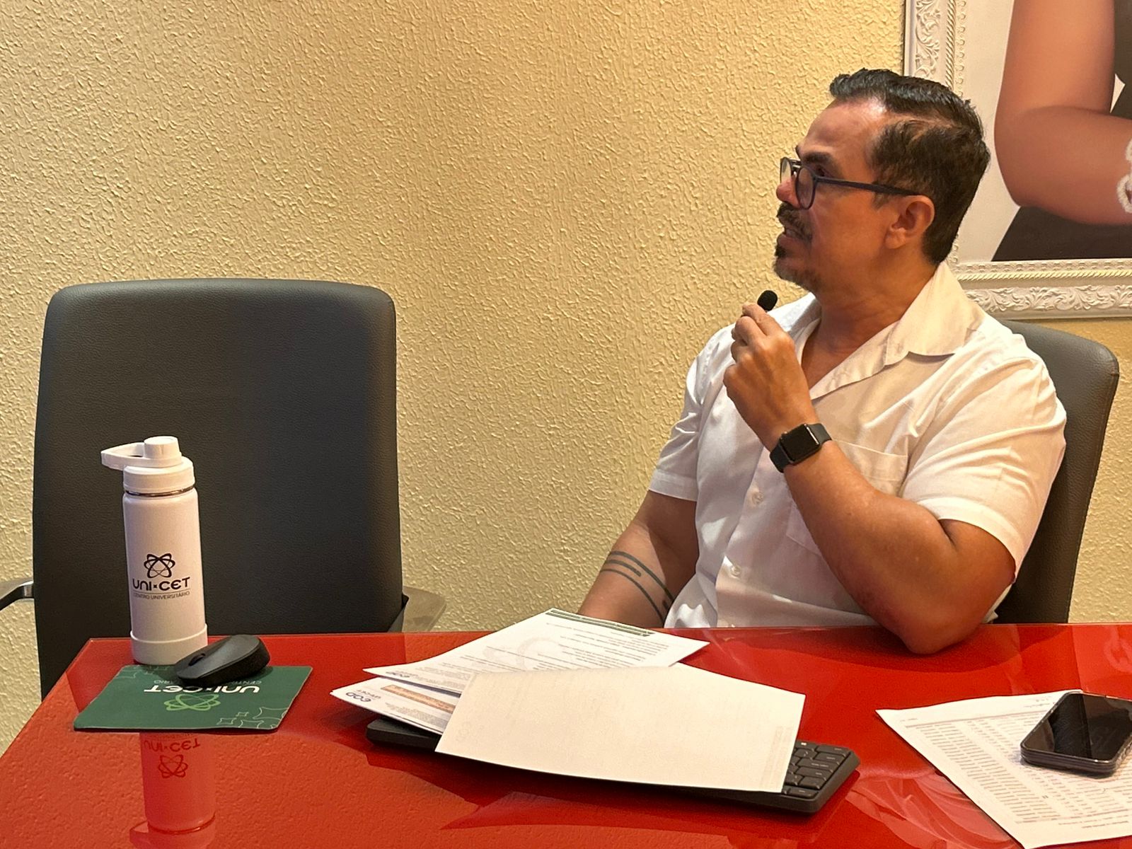 O encontro foi conduzido pelo Coordenador dos cursos EaD, Prof. Dr. Márcio Luciano, que em sua fala introdutória, pontuou a importância desse momento, como espaço de escuta, orientação e segurança, auxiliando os alunos a compreenderem a dinâmica do EaD. Além disso, a equipe de professores foi apresentada, assim como o funcionamento institucional, as diretrizes do curso e o calendário acadêmico.