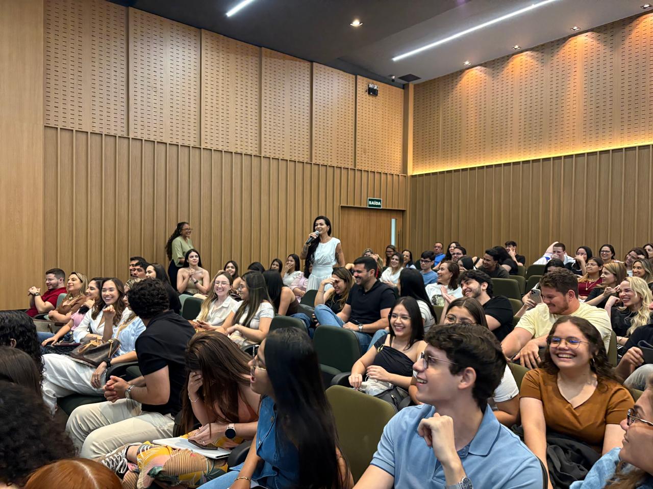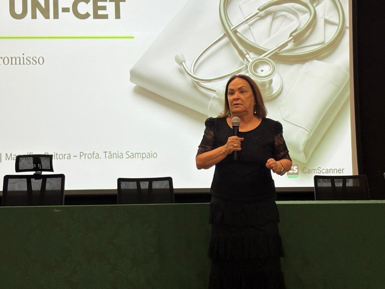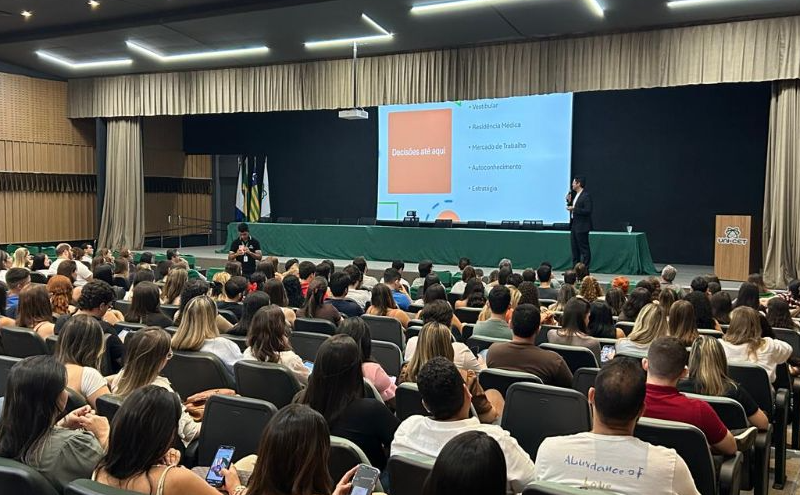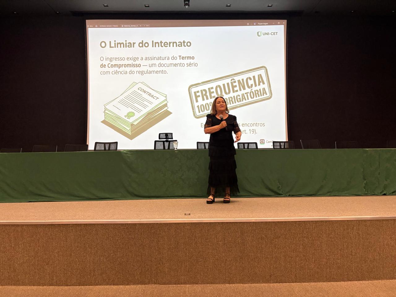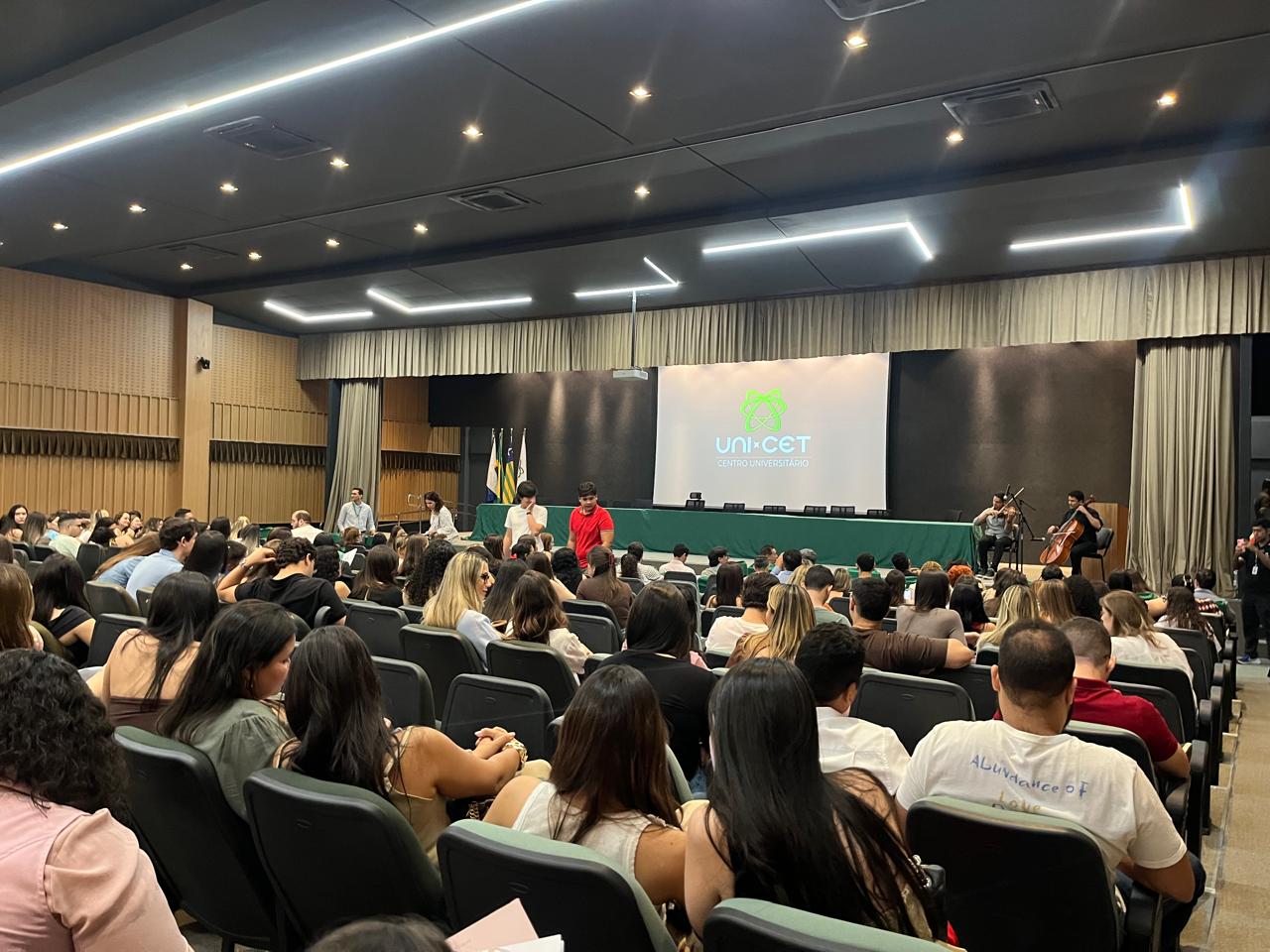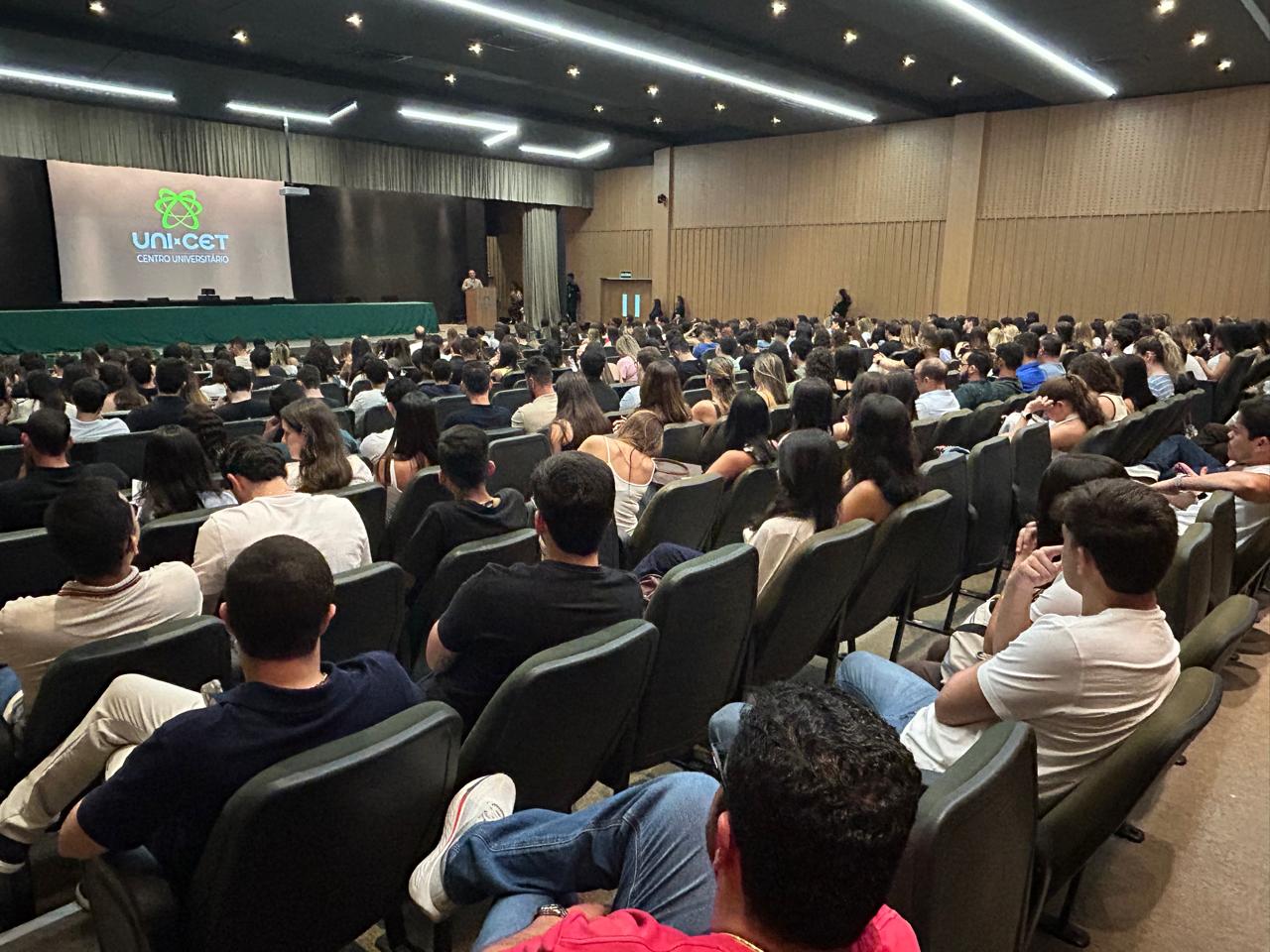 No período da tarde, a programação foi voltada aos calouros, que participaram de um momento especial de recepção e integração. Os novos acadêmicos tiveram a oportunidade de conhecer as rotinas acadêmicas do curso de Medicina, apresentadas pelas coordenadoras, Profa. Lara Medeiros e Profa. Ana Valéria, além das Orientações e Normas do Estudante UNI-CET, conduzidas pela Reitora, Profa. Tânia Sampaio.