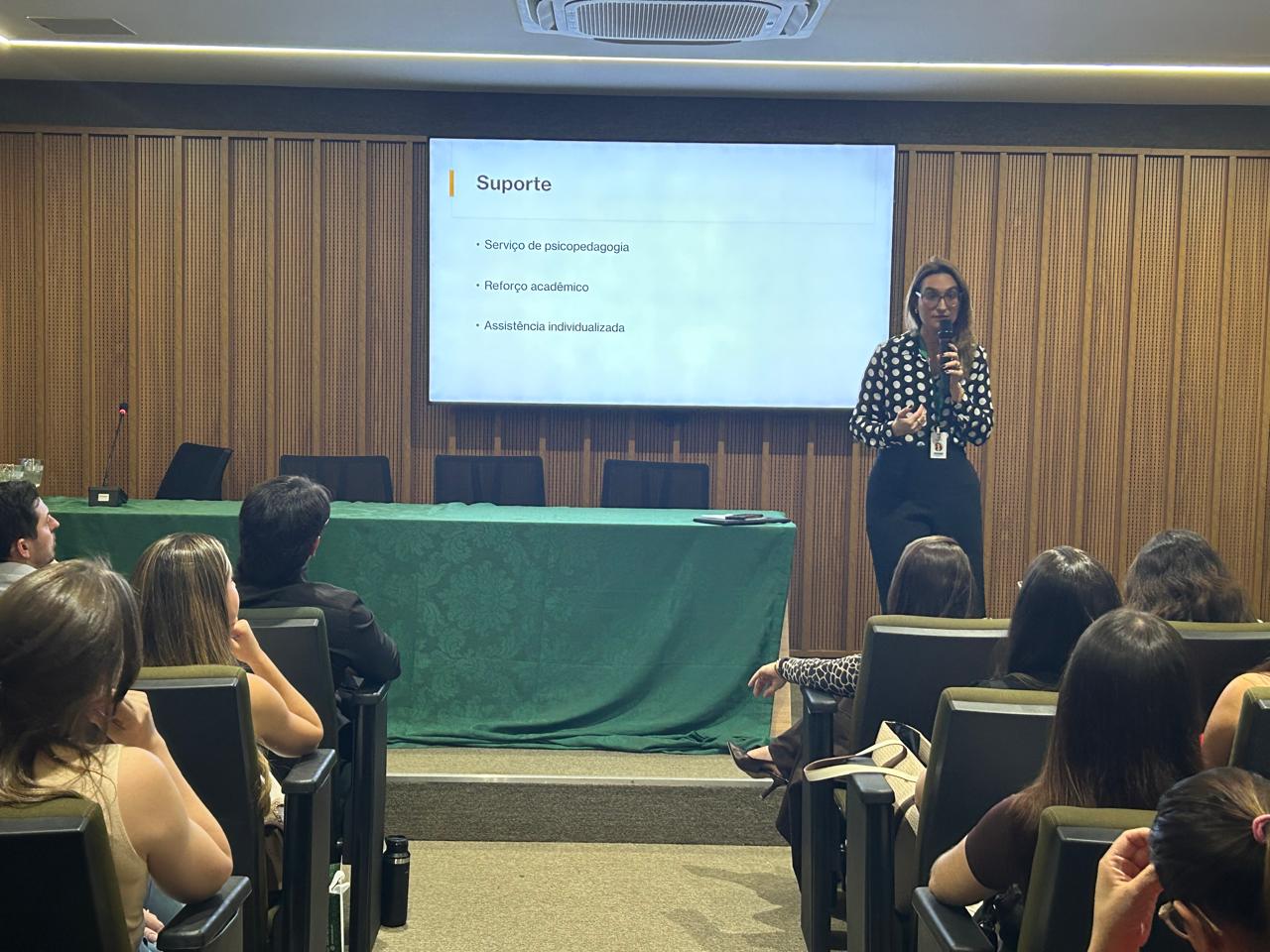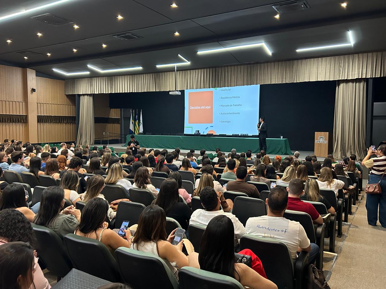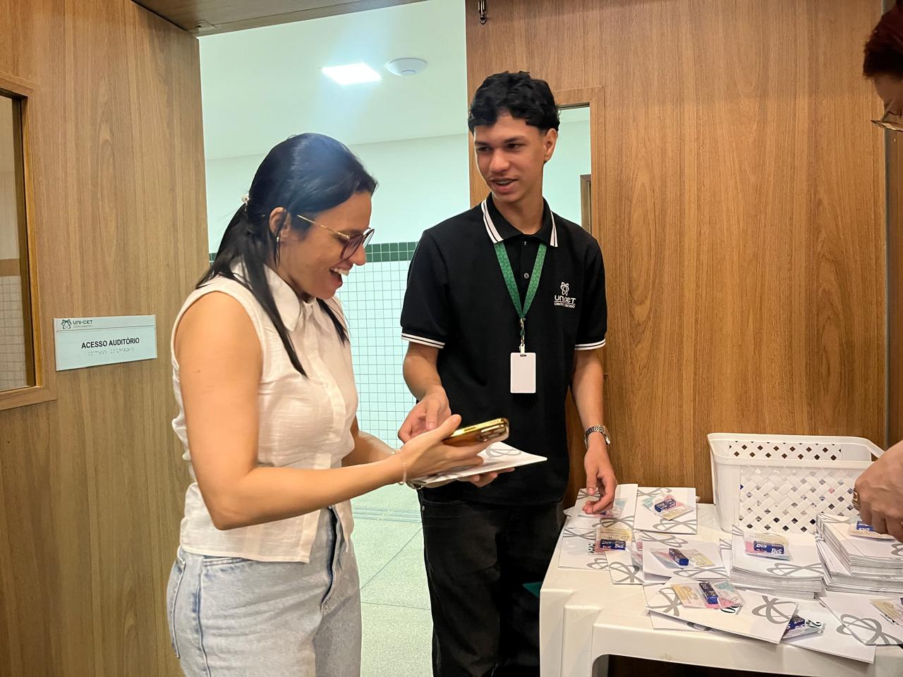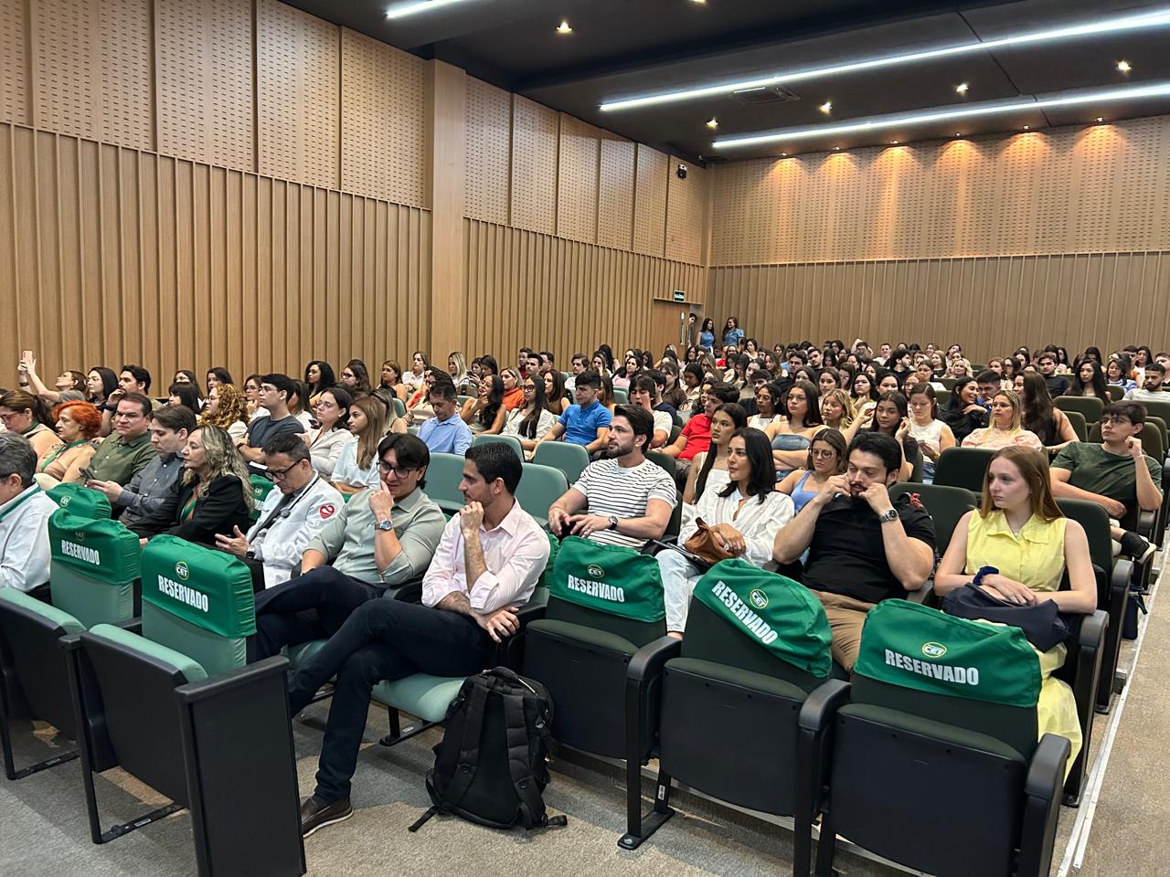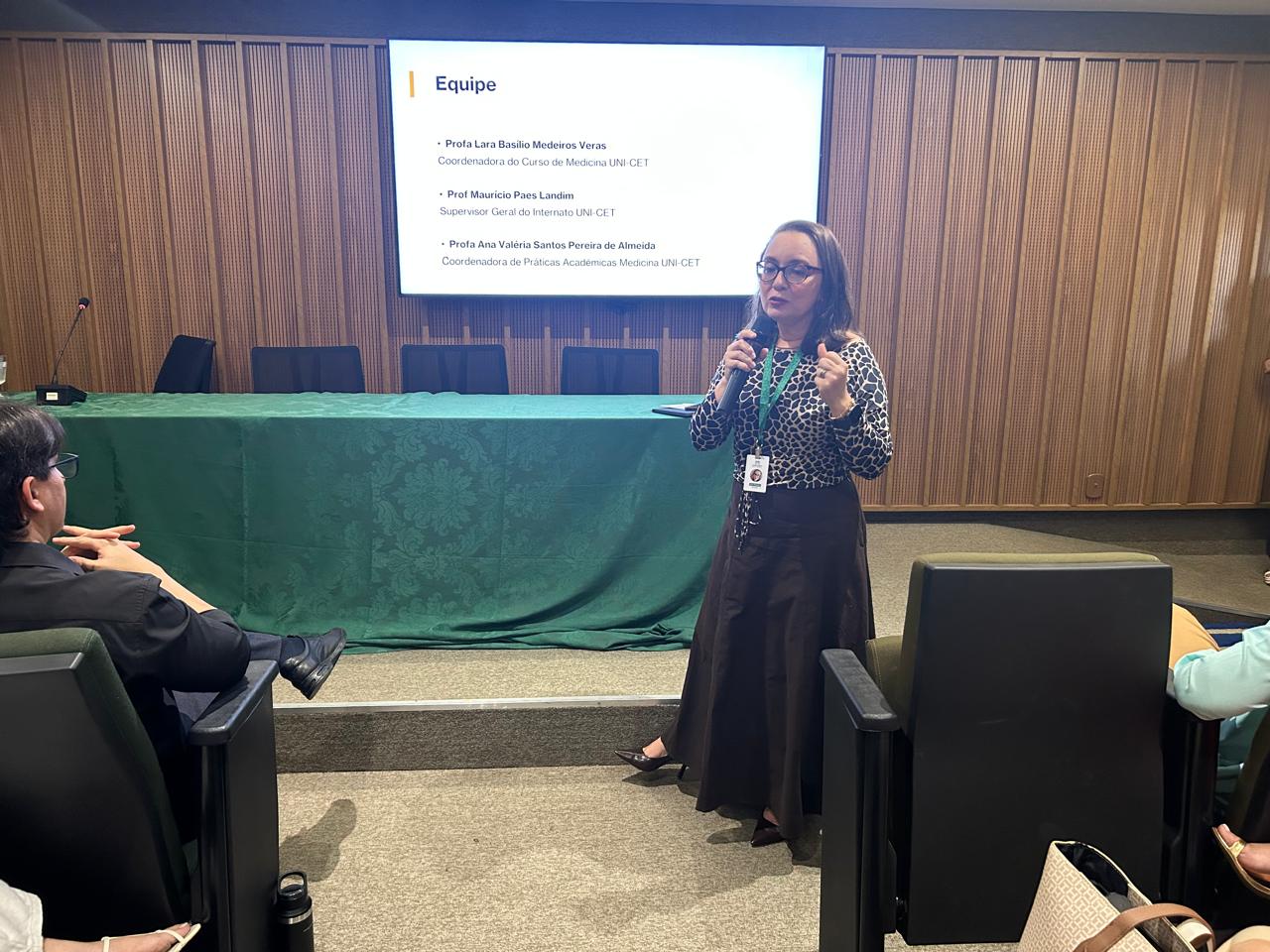 No período da tarde, a programação foi voltada aos calouros, que participaram de um momento especial de recepção e integração. Os novos acadêmicos tiveram a oportunidade de conhecer as rotinas acadêmicas do curso de Medicina, apresentadas pelas coordenadoras, Profa. Lara Medeiros e Profa. Ana Valéria, além das Orientações e Normas do Estudante UNI-CET, conduzidas pela Reitora, Profa. Tânia Sampaio.