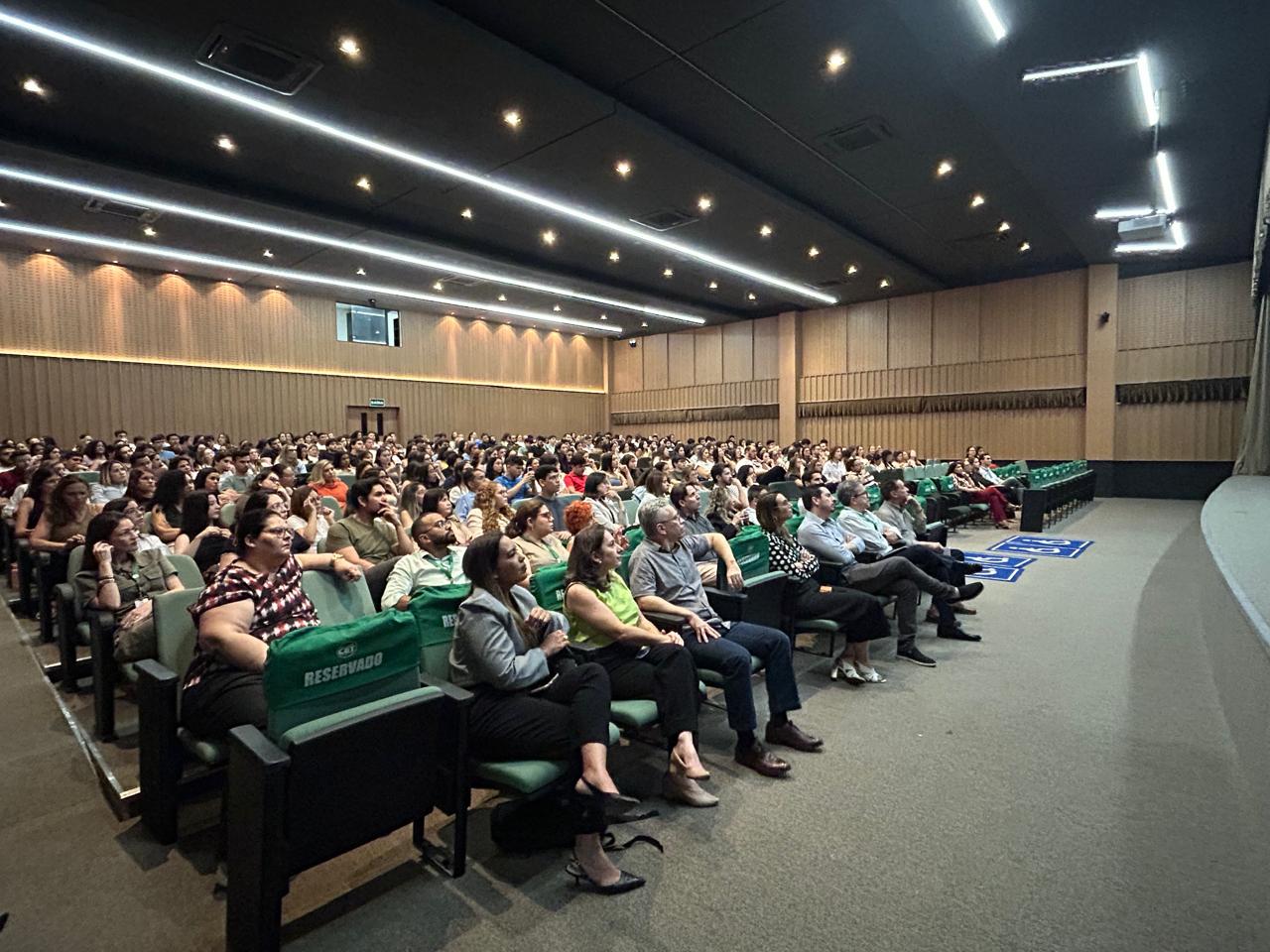 A programação destinada aos veteranos teve início pela manhã com a palestra “Decisões difíceis em oncologia: casos que moldaram minha prática clínica”, ministrada pelo Dr. Cláudio Rocha, médico oncologista. A partir da apresentação de casos reais, o palestrante compartilhou experiências profissionais, decisões clínicas complexas e reflexões que vão além da técnica, reforçando a importância da ética, da responsabilidade e da humanização na prática médica.