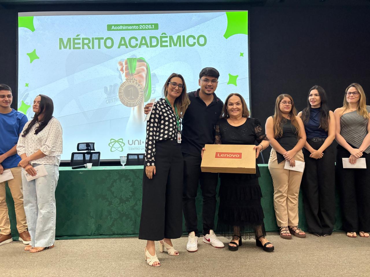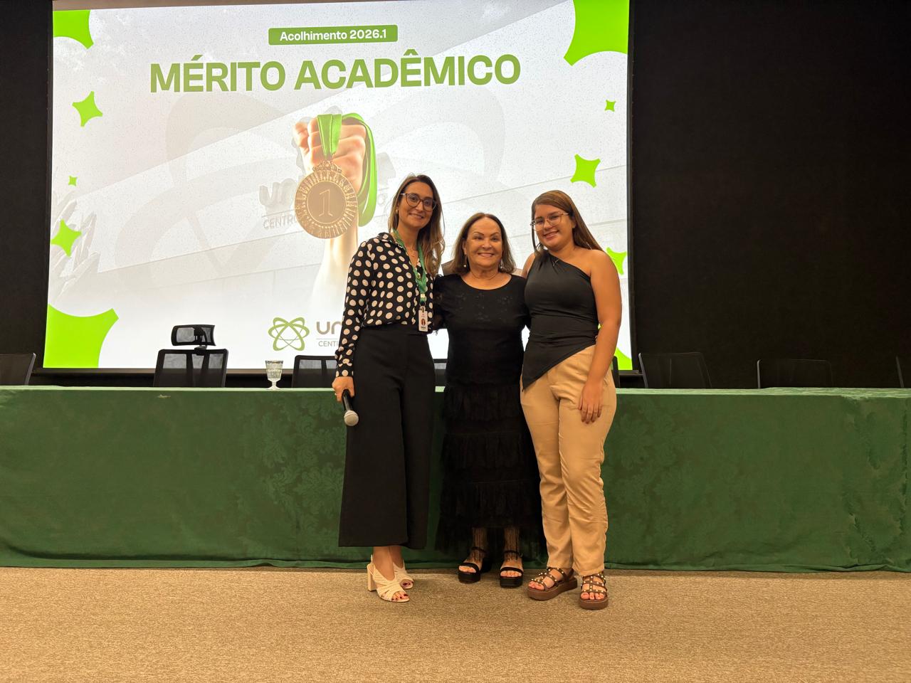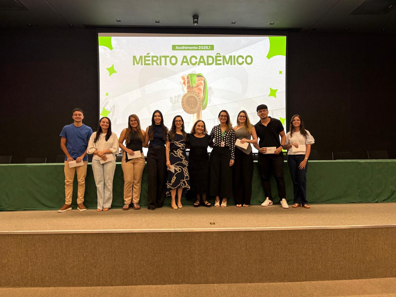 Ainda durante o acolhimento dos veteranos, foi realizada a premiação do Mérito Acadêmico, que reconhece e homenageia os estudantes com melhor desempenho no semestre anterior, como forma de valorizar a dedicação, o compromisso e a busca contínua pela excelência acadêmica.
