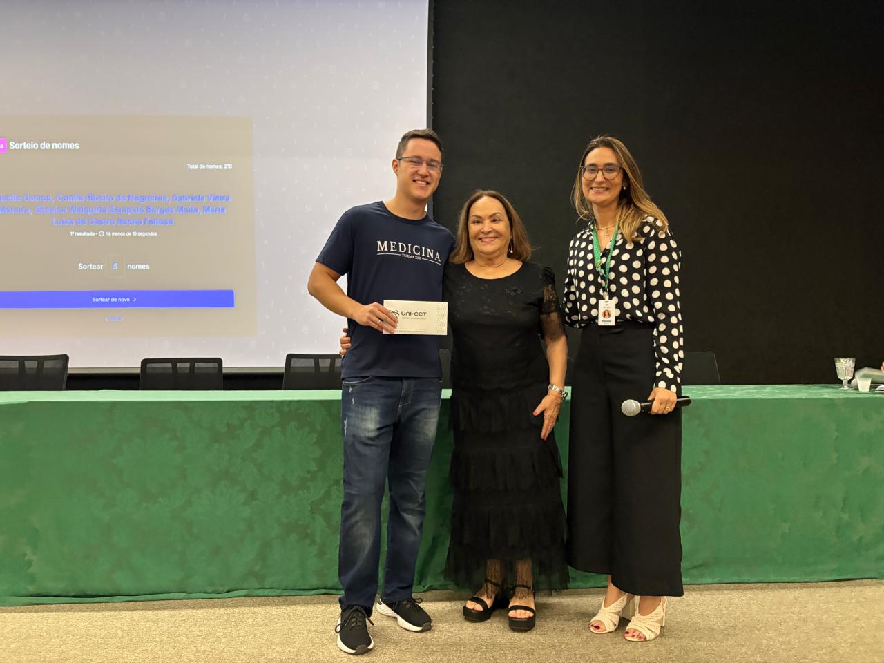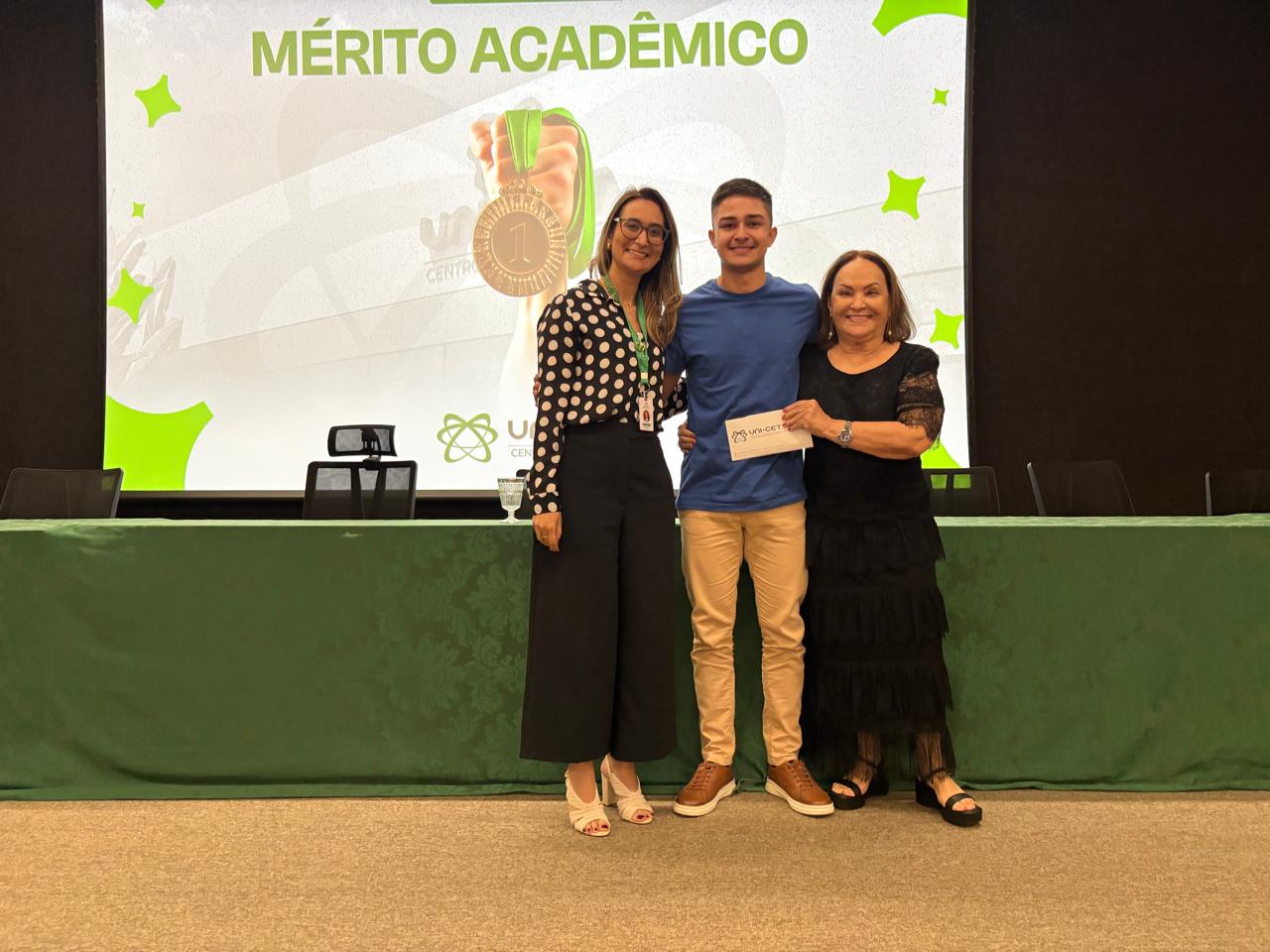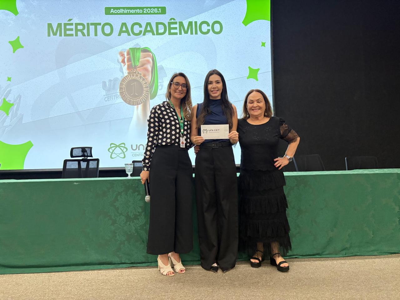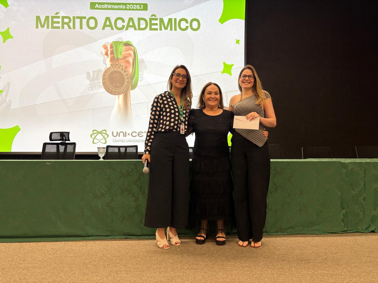 Ainda durante o acolhimento dos veteranos, foi realizada a premiação do Mérito Acadêmico, que reconhece e homenageia os estudantes com melhor desempenho no semestre anterior, como forma de valorizar a dedicação, o compromisso e a busca contínua pela excelência acadêmica.