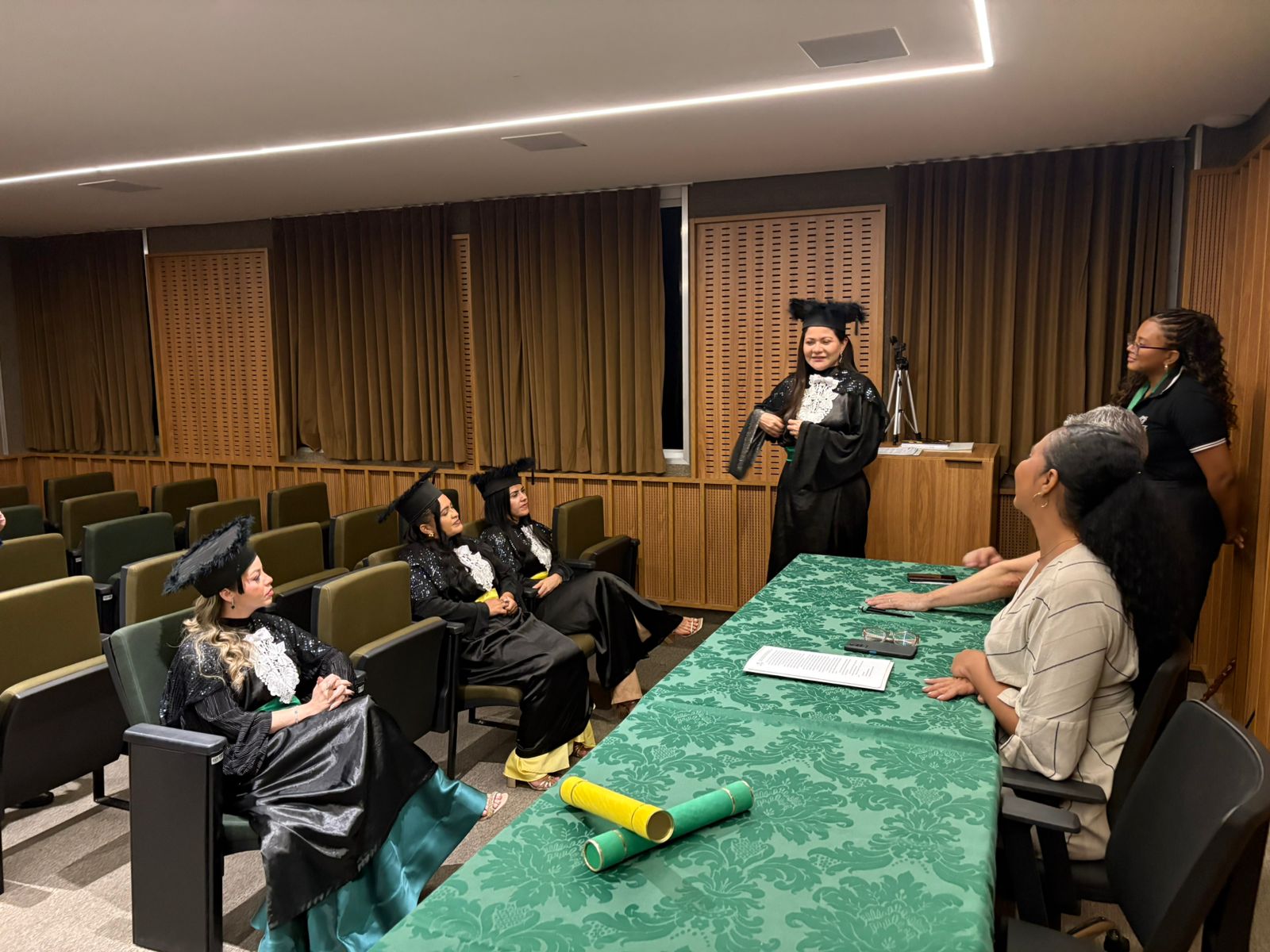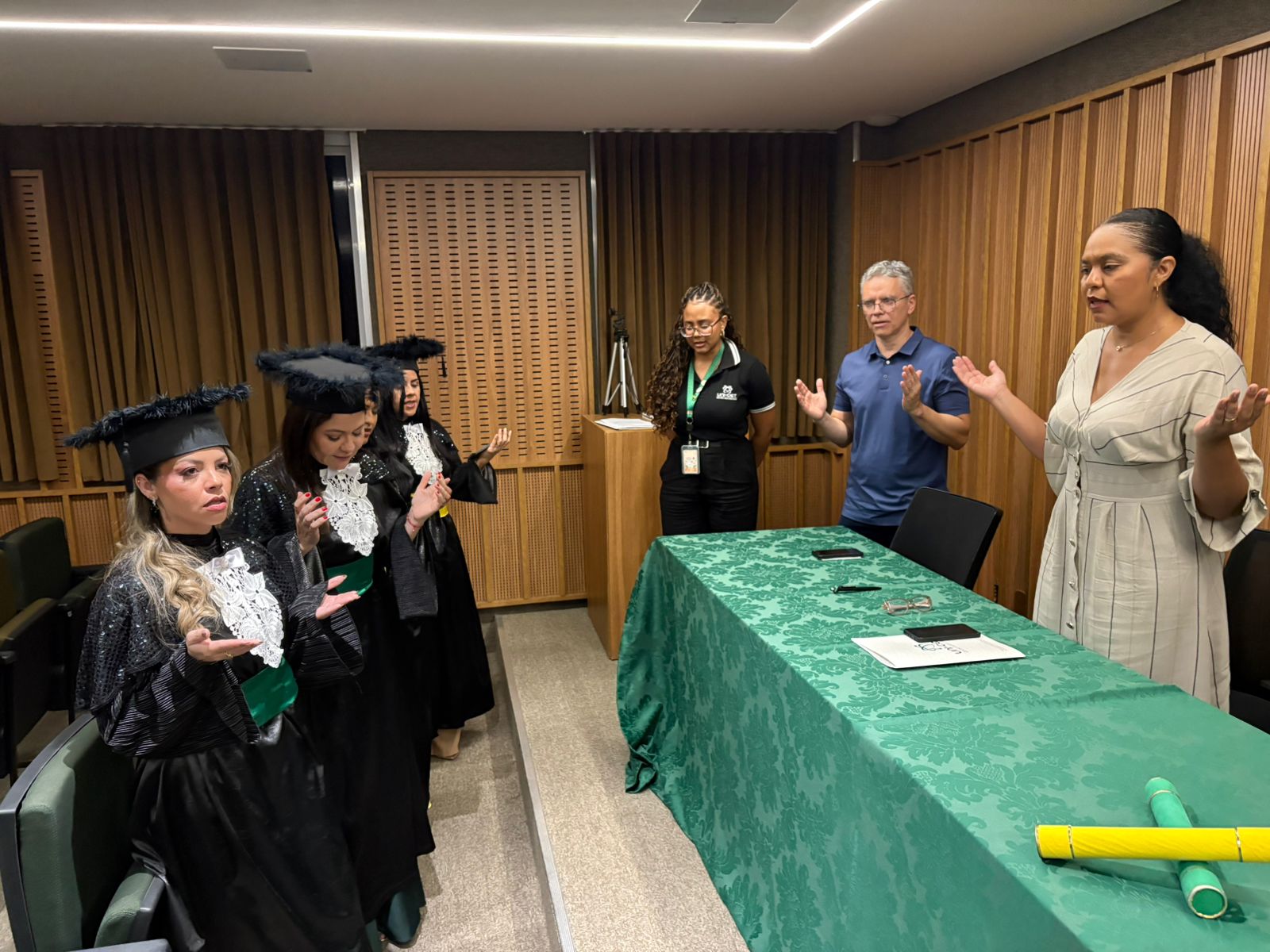 A solenidade foi presidida pelo Vice Reitor, Renato Sampaio, e contou com a participação da Profa. Ma. Thiara Lorenna, coordenadora do curso de Farmácia, e do Professor Fábio Luiz Martins, Gerente do Programa de Acompanhamento de Egressos e Empregabilidade. A formalidade do ato acadêmico deu lugar à emoção ao enaltecer histórias de persistência e compromisso com o conhecimento científico e a saúde. Para as graduandas, a colação representou não apenas a conclusão da graduação, mas a concretização de sonhos construídos ao longo da vida universitária.